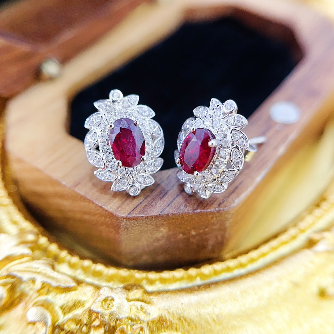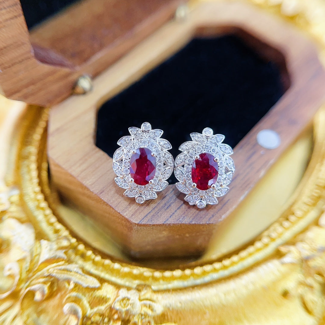 Indulge in the timeless elegance of our 18K rose gold vintage elliptical ruby diamond earrings. The earrings feature a stunning main ruby gemstone weighing 1.16 carats, complemented by dazzling diamond accents totaling 0.26 carats. With a total weight of 2.82 grams, these earrings are a perfect blend of classic and contemporary design. Crafted to perfection, they are an ideal choice for those seeking to add a touch of sophistication to their jewelry collection. Elevate your style and make a statement with these exquisite earrings. Explore our collection now and embrace the luxury of fine jewelry. Shop today and experience the allure of exquisite craftsmanship and exceptional quality.