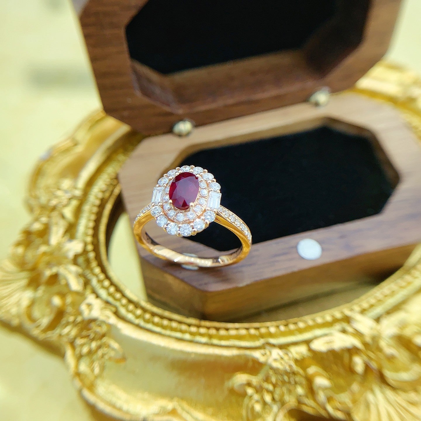 Elevate your jewelry collection with this exceptional piece that combines classic design with modern finesse. Don’t miss the opportunity to make this stunning 18K Ruby Ellipse Double Halo Ring a part of your signature style. Explore our collection now and indulge in the luxury you deserve.