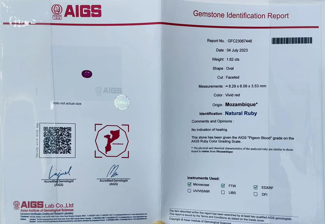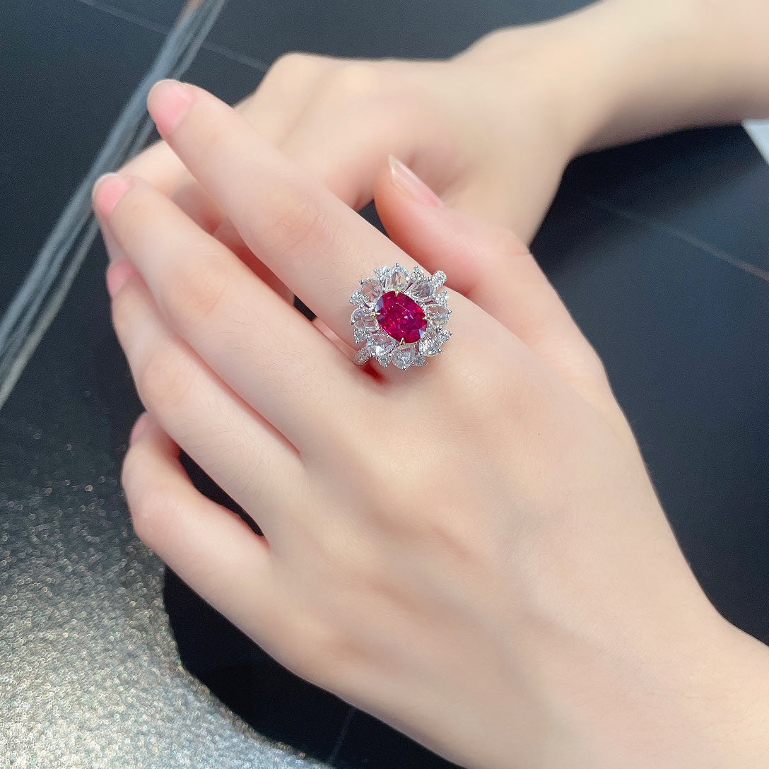 Discover the exquisite elegance of our 18K Ruby Ellipse Rose-Cut Double-Wear Jewelry, a masterpiece that combines luxury with versatility. The centerpiece boasts a remarkable main stone of 1.62 carats, complemented by a dazzling deputy stone of 1.18 carats, all set in a stunning oval rose-cut design. Crafted with precision, this 5.59-gram jewelry features a size 14 ring setting (adjustable for a perfect fit).