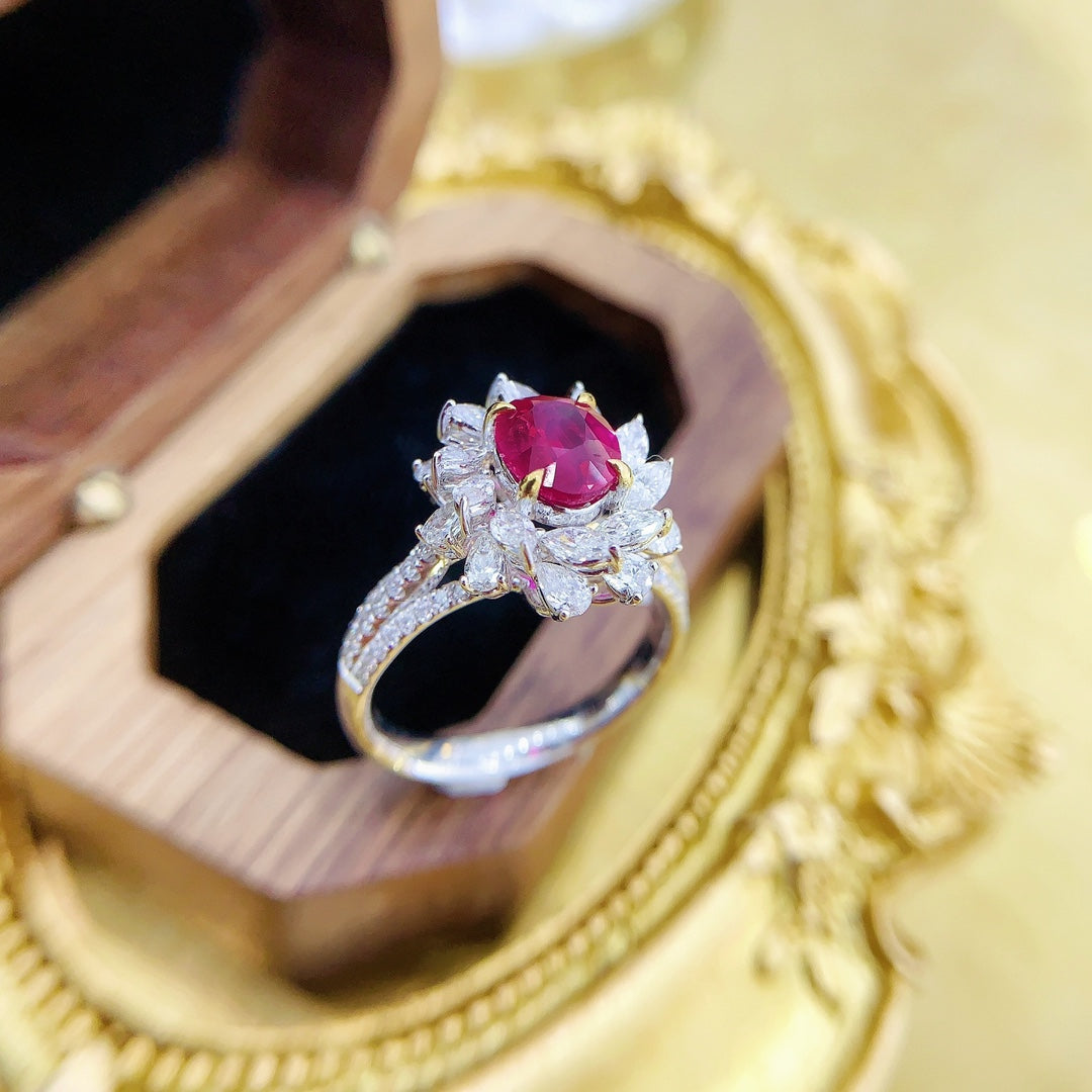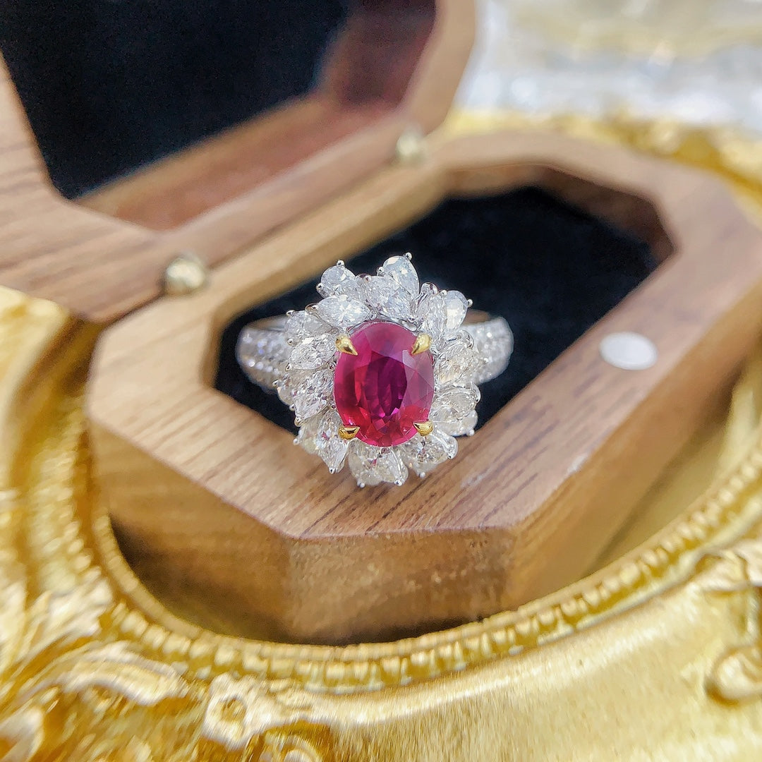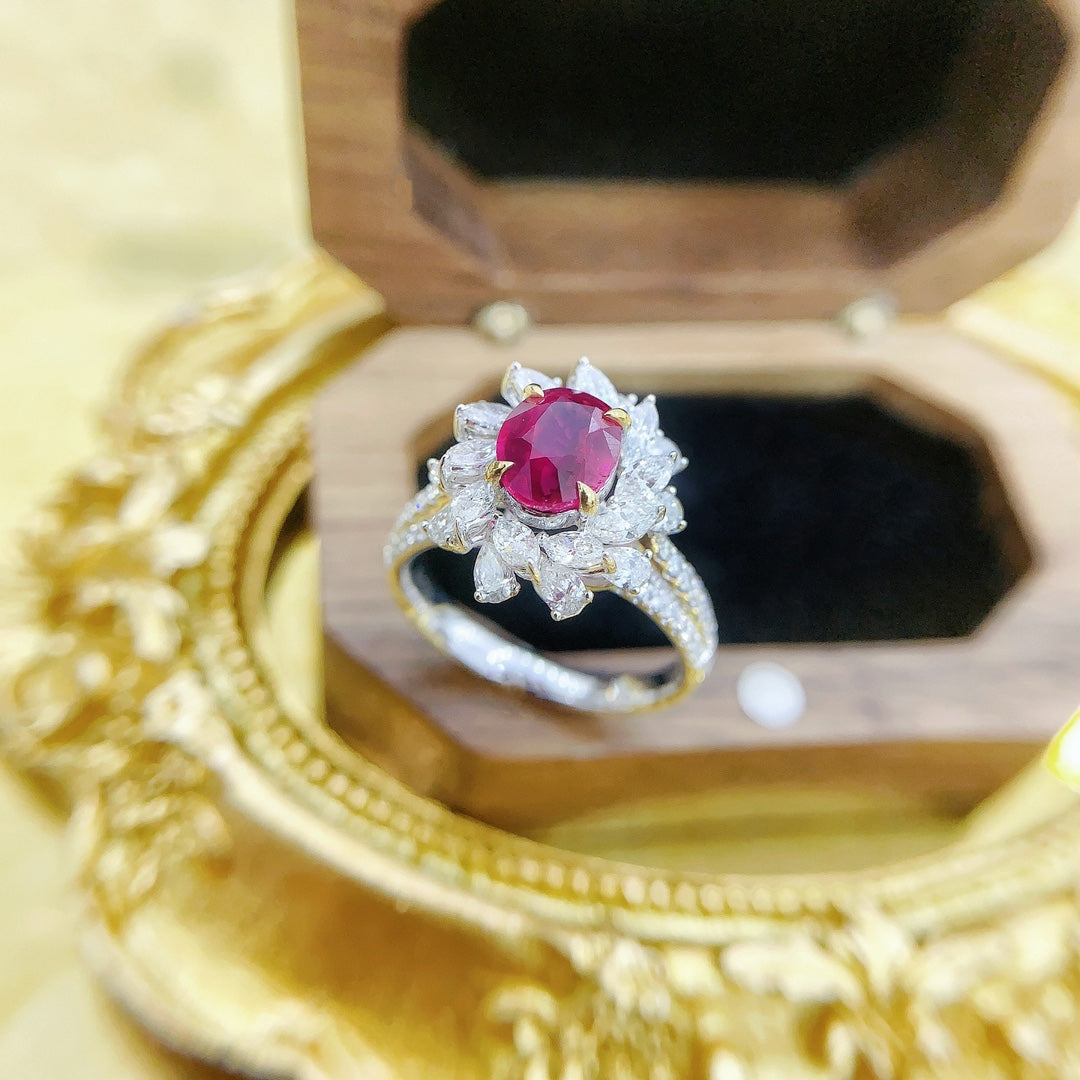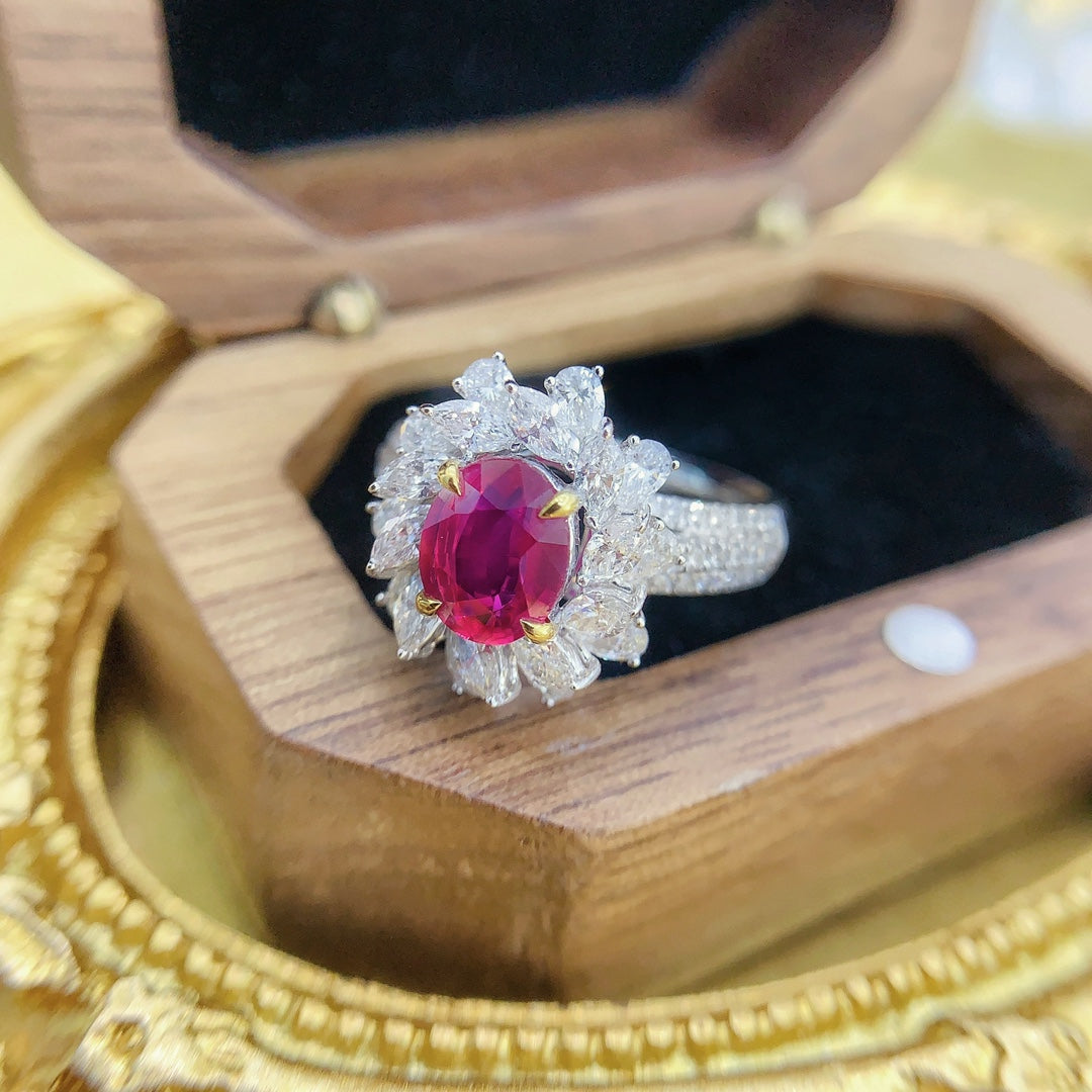Discover the elegance of our 18K Ruby Oval Rotating Marquise Ring, a masterpiece in fine jewelry craftsmanship. Adorned with a stunning main stone of 1.52ct and complemented by accent stones totaling 1.33ct, this ring is a true symbol of luxury. With a total weight of 5.58g and a resizable ring size of 14#, it promises both comfort and style. Certified by AIGS for its unheated pigeon blood red gemstones, this ring is a testament to authenticity and quality. Elevate your jewelry collection with this exquisite piece that combines timeless beauty with modern design. Experience the allure of premium jewelry that not only captivates but also appreciates. Make a statement with this ring – explore the luxury it offers and indulge in a purchase that celebrates your unique taste and sophistication.