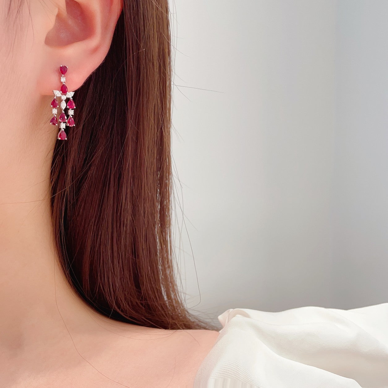 Elevate your elegance with our exquisite 18K Ruby Waterdrop Marquise Tassel Earrings. Crafted to perfection, these earrings feature a stunning main stone weighing 2.72 carats, complemented by exquisite accent stones totaling 0.66 carats, all set in luxurious 18K gold. With a total weight of 4.06 grams, these earrings are a testament to timeless beauty and sophistication. The unique marquise shape and the graceful tassel design add a touch of dynamism to your every move, making them a perfect choice for any special occasion or to elevate your daily attire. Embrace the luxury and make a statement with these remarkable earrings. Explore the enchantment of fine jewelry and indulge in a purchase that celebrates your unique style and grace.