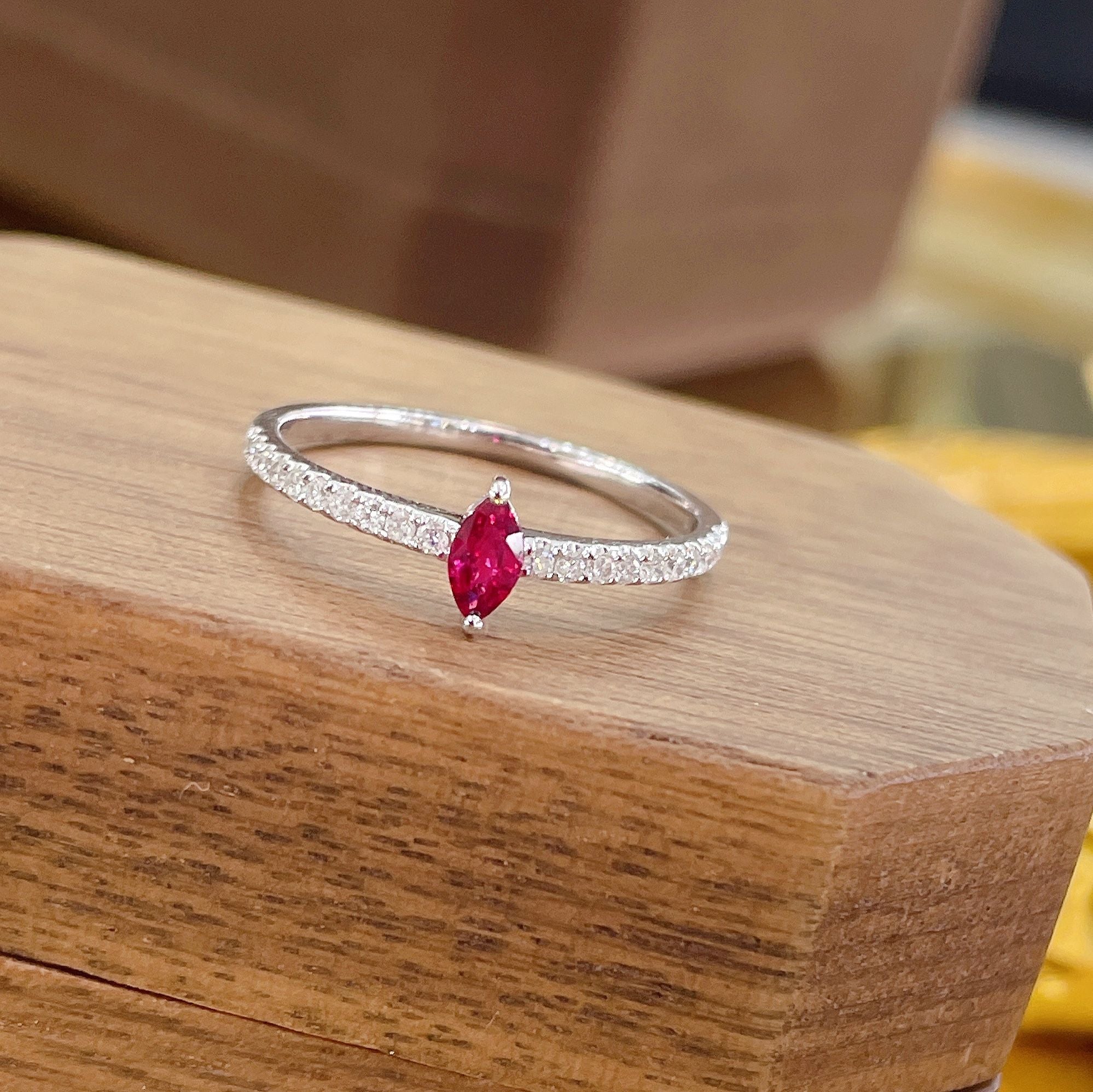 Discover the exquisite elegance of our 18K Single Marquise Red Gemstone Ring, a true masterpiece in jewelry craftsmanship. This stunning ring features a main gemstone weighing R0.145ct, complemented by a delicate accent stone of d0.138ct, all nestled in a lightweight design of 1.2g. Crafted to perfection, it offers a comfortable fit with adjustable ring sizes ranging from 11 to 13# (resizable for your convenience).