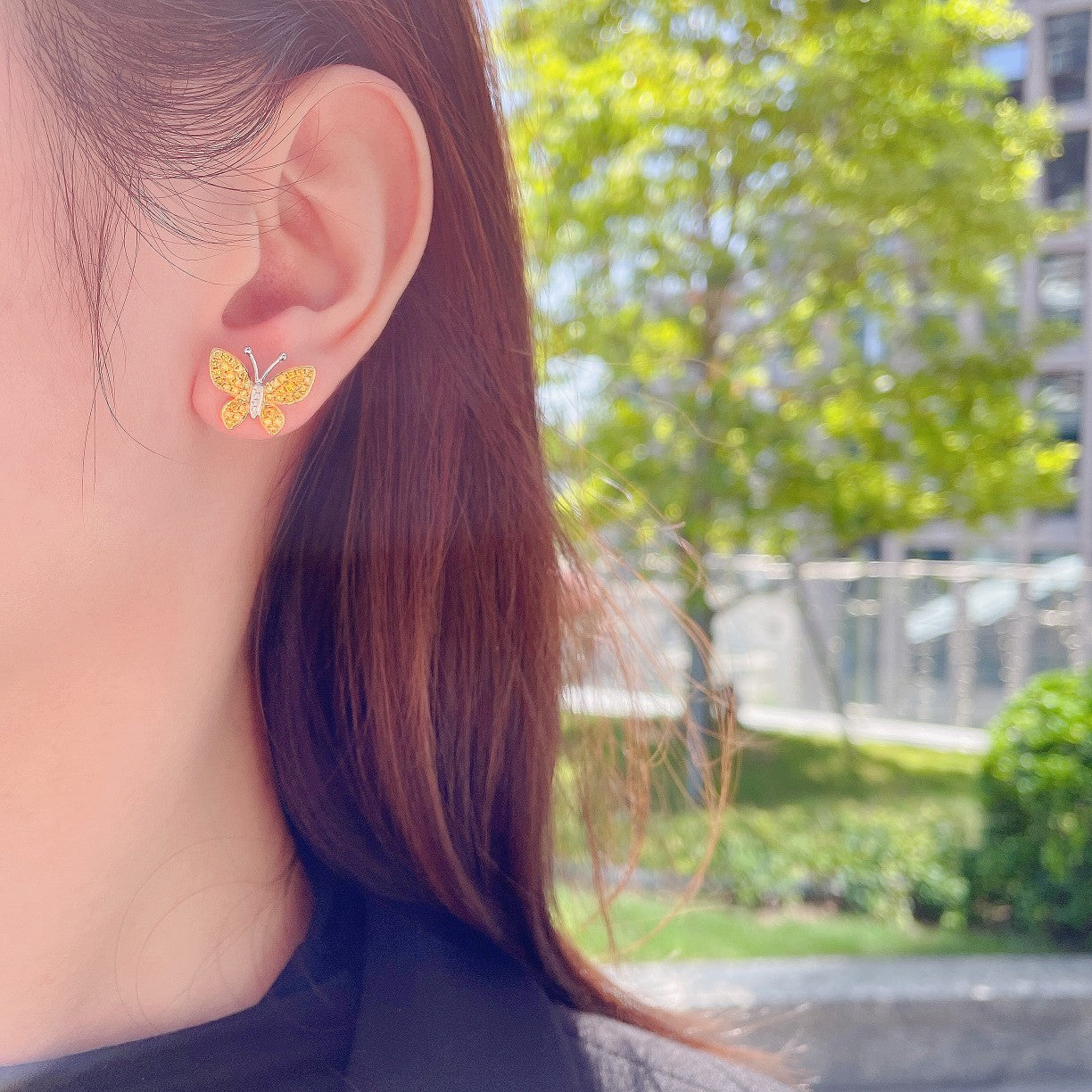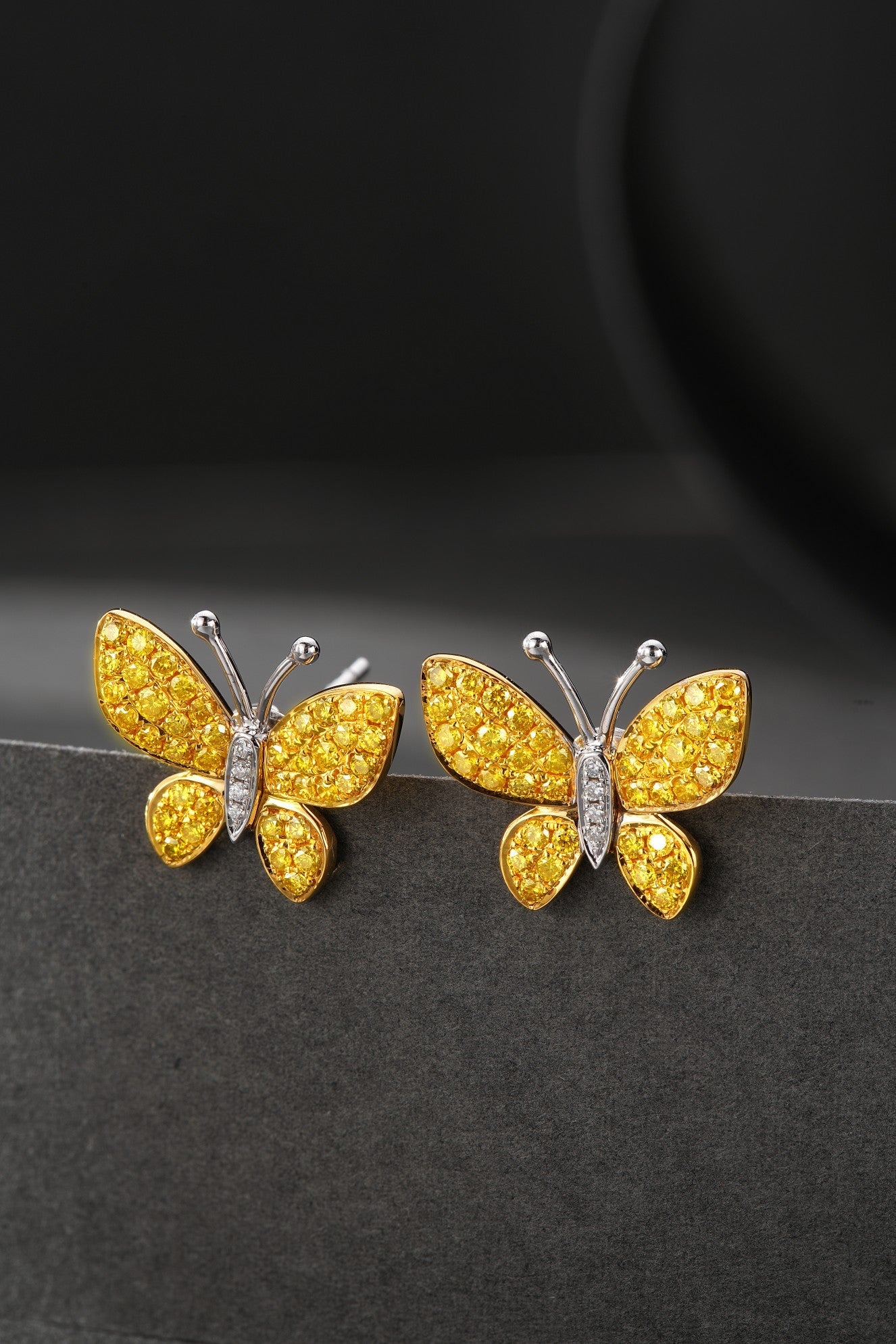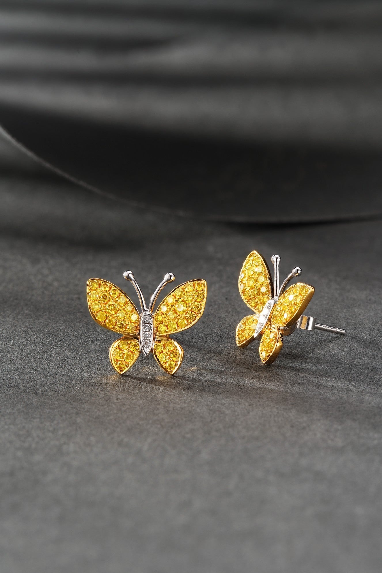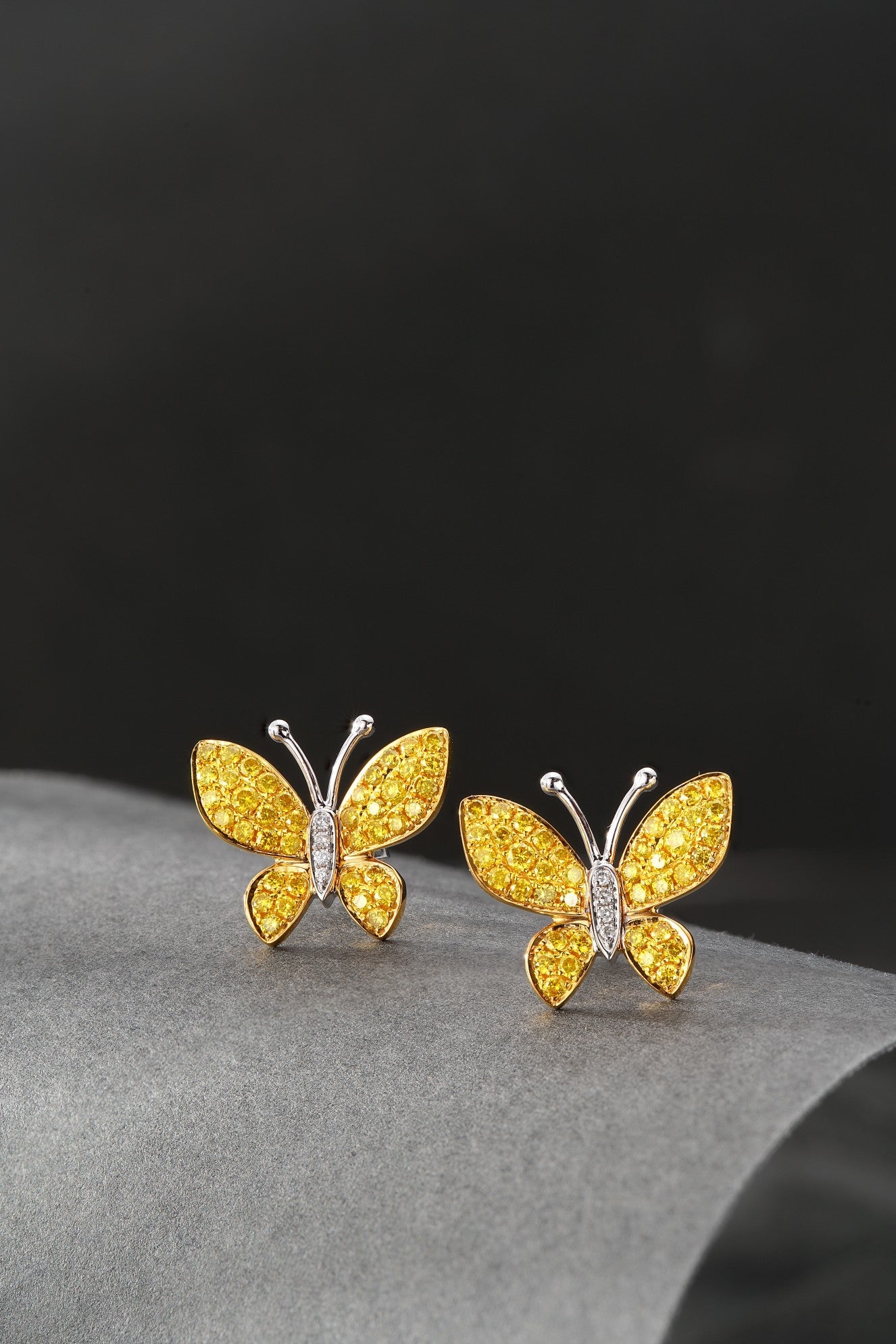 Elevate your elegance with our exquisite 18K yellow gold diamond butterfly earrings. These earrings, featuring a captivating butterfly design adorned with dazzling diamonds, are a perfect addition to any jewelry collection. The diamonds, with a total weight of 0.66 carats, add a touch of luxury and sparkle to these lightweight earrings, weighing just 3.01 grams. Crafted to perfection, these earrings are sure to turn heads and make a statement wherever you go. Embrace the beauty and grace of these earrings and elevate your every look. Explore our collection now and indulge in the luxury of fine jewelry. Shop today and make these stunning earrings a part of your signature style.