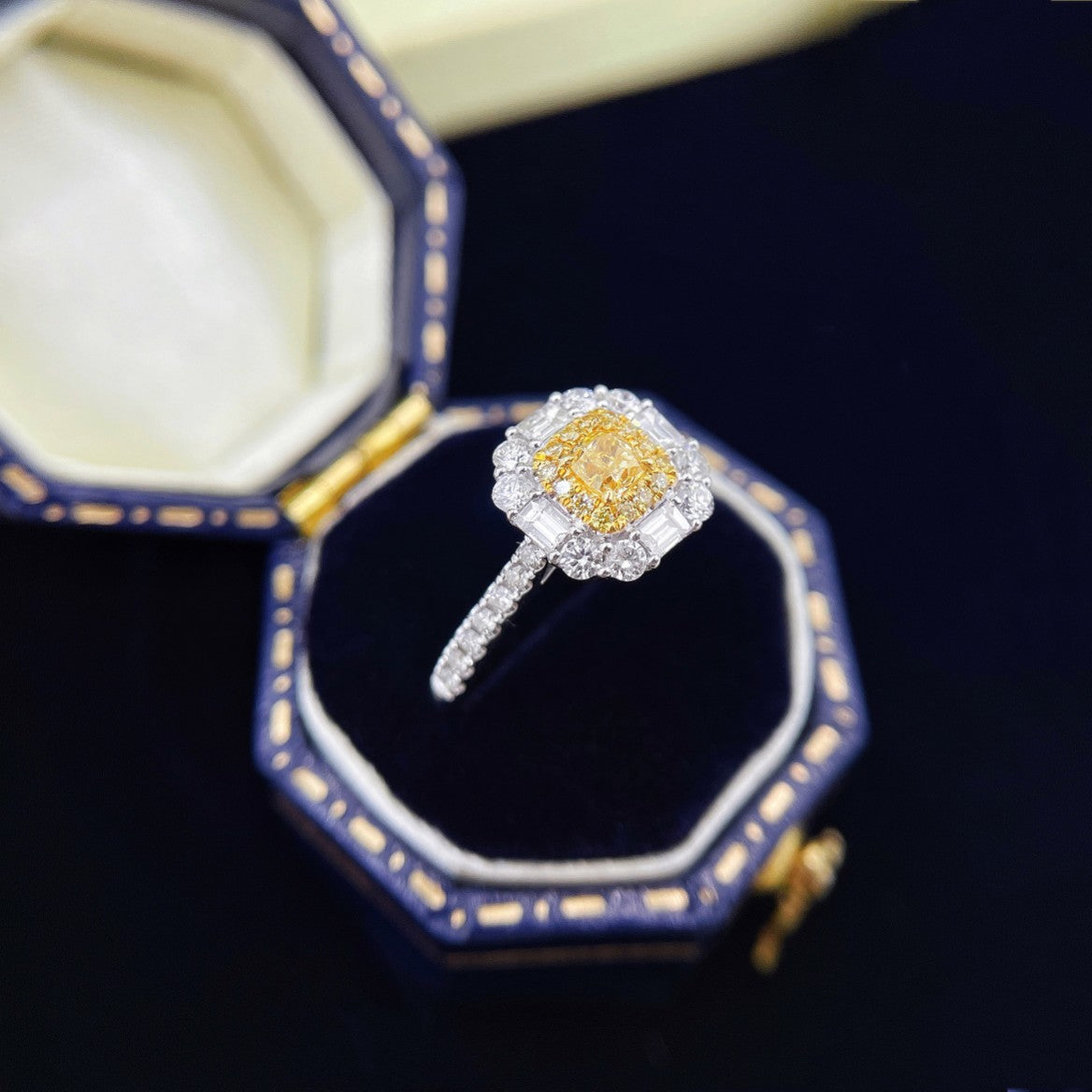 Experience the elegance of luxury with our exquisite 18K yellow gold diamond cluster ring. This stunning piece features a main diamond weighing 0.19ct, complemented by surrounding diamonds totaling 0.48ct, all crafted to perfection in a timeless design. With a total weight of 2.42g and a resizable ring size from 11 to 17#, it’s the perfect fit for every unique finger. Make a statement with this remarkable jewelry that encapsulates sophistication and glamour. Elevate your collection or gift someone special with this piece that promises to be a cherished treasure for generations. Explore the allure of high-end jewelry and indulge in the luxury of this exceptional ring. Shop now and embrace the brilliance it brings to your life.