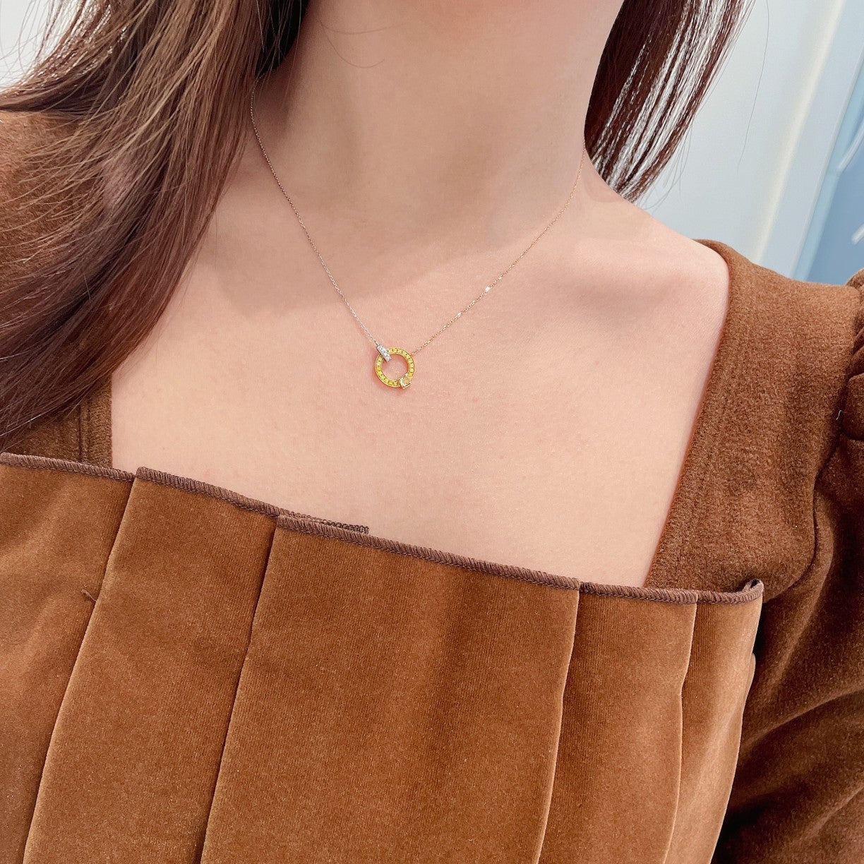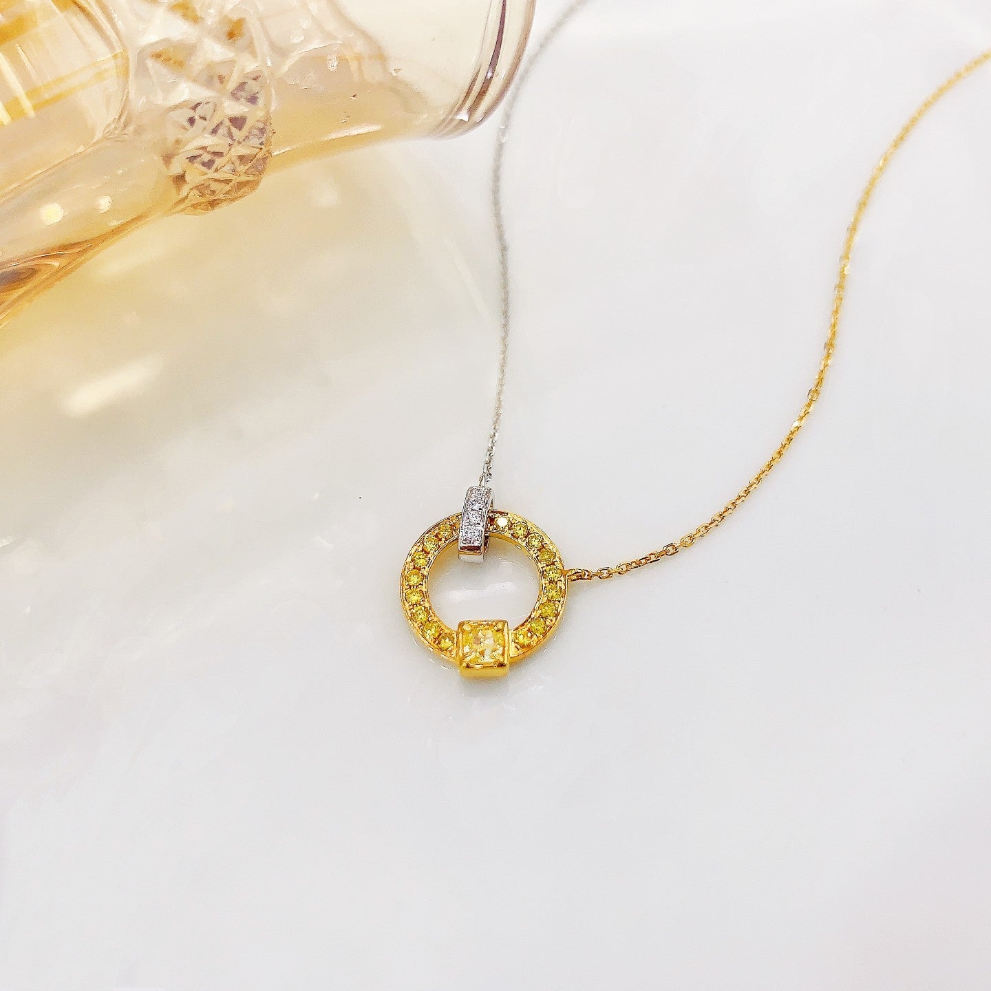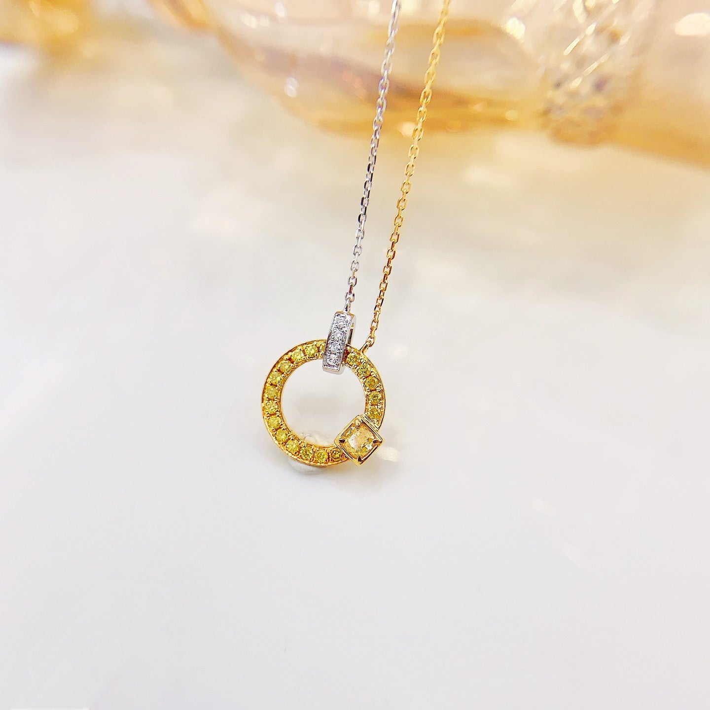 Indulge in the exquisite luxury of our 18K yellow gold diamond cushion-cut double loop necklace. This stunning piece of jewelry features a main diamond weighing D0.099ct, complemented by accent diamonds totaling d0.169ct, all elegantly set in a 2.20g design. Crafted with precision and passion, this necklace is a testament to timeless beauty and sophistication. Elevate your every look with this remarkable jewelry that effortlessly combines elegance with a touch of modern flair. Don’t miss the opportunity to add this exquisite necklace to your collection. Experience the allure of luxury jewelry that truly makes a statement. Shop now and embrace the elegance it brings.