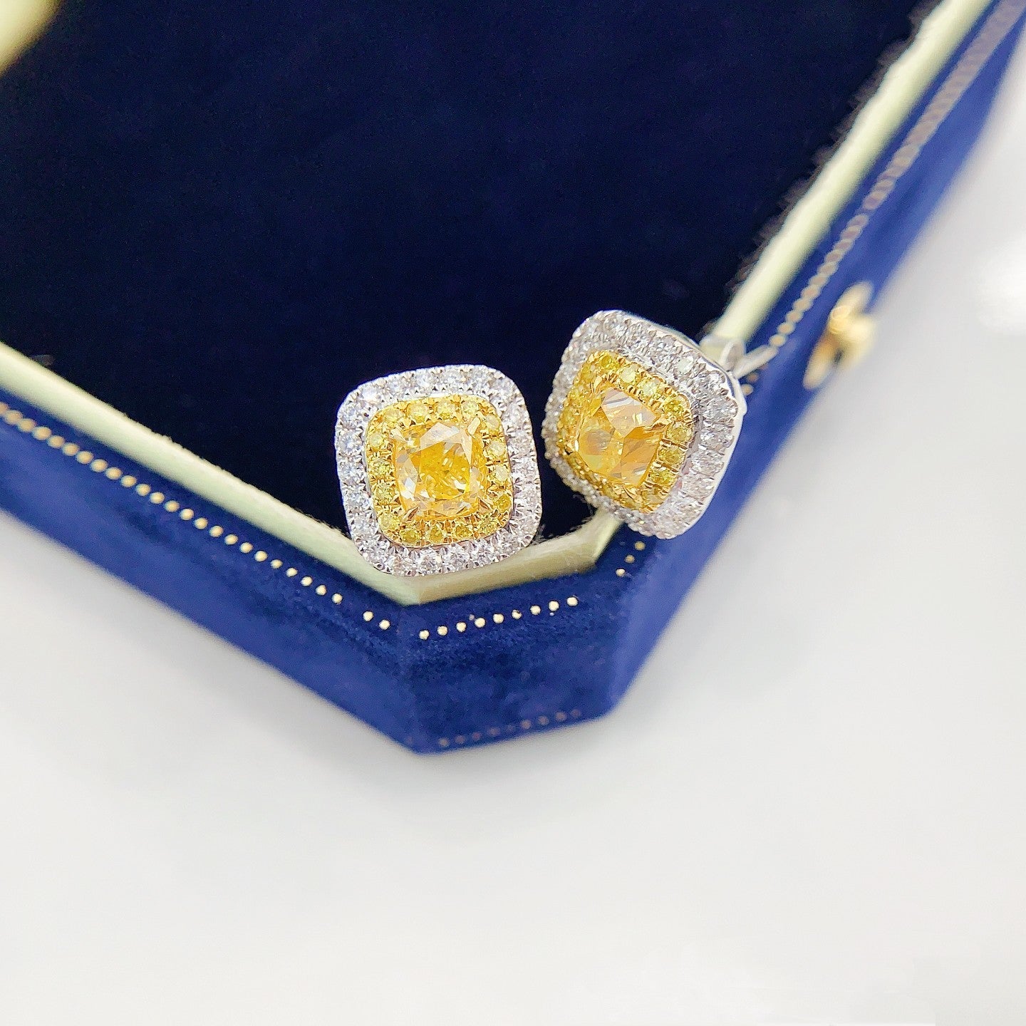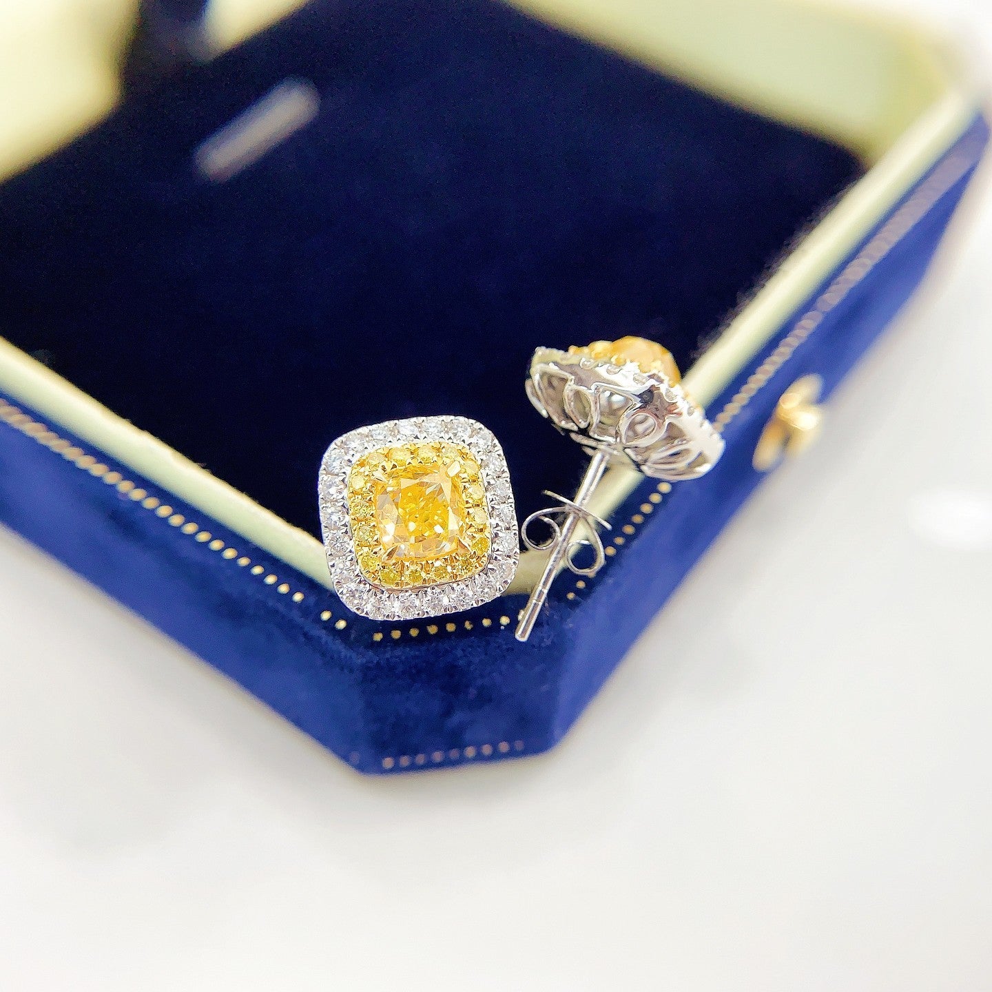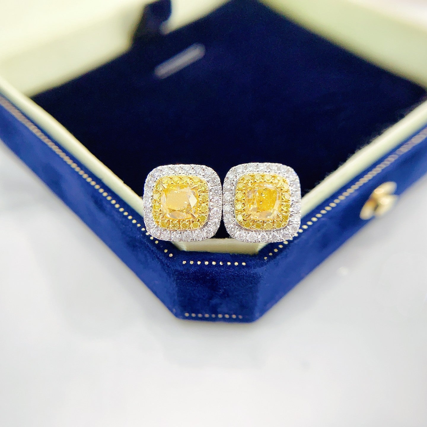 Elevate your elegance with our exquisite 18K yellow gold diamond cushion-cut stud earrings. These earrings feature a dazzling main stone weighing 2.02 carats, complemented by accent stones totaling 0.66 carats, all crafted into a luxurious 4.13-gram design. The authenticity and quality of these stunning earrings are assured by the accompanying AGL international authority certificate. Experience the perfect blend of sophistication and glamour that these earrings bring to your every look. Make a statement with every turn, and indulge in the luxury that these earrings promise. Don’t miss the opportunity to adorn yourself with this piece of timeless jewelry. Explore our collection now and elevate your jewelry box with this exceptional addition.