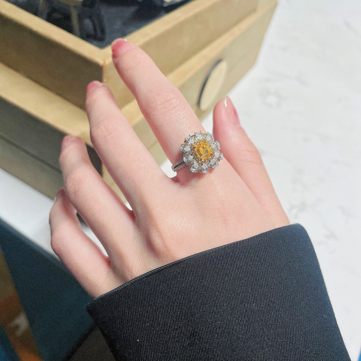 Indulge in the luxury of our exquisite 18K yellow gold diamond cushion-cut teardrop color-separated ring. This masterpiece features a prominent main stone of 1.01 carats and an accentuating sub-stone of 1.31 carats, with a total weight of 5.71 grams. Crafted to perfection, the ring size is 13# (adjustable for a personalized fit). Accompanied by the esteemed AGL international certification, this ring is a testament to elegance and sophistication. Elevate your jewelry collection with this unique and captivating piece that promises to make every moment special. Discover the allure of premium jewelry and make this exquisite ring a part of your cherished possessions. Explore now and embrace the elegance it bestows.