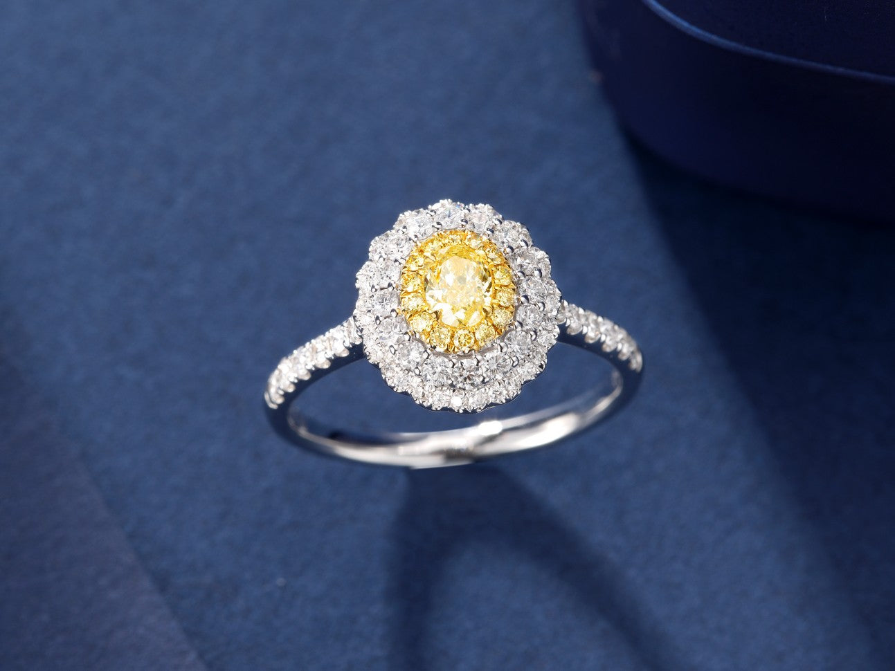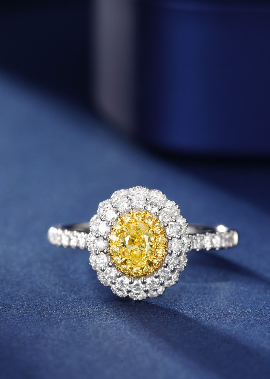 Discover the exquisite elegance of our 18K yellow gold diamond ellipse cluster ring, a true masterpiece of jewelry craftsmanship. This stunning ring features a central diamond weighing 0.20ct, accompanied by surrounding diamonds totaling 0.46ct, all nestled in a luxurious 2.60g setting. Designed to fit sizes 12-16# (adjustable for your comfort), this ring is a symbol of timeless beauty and sophistication.