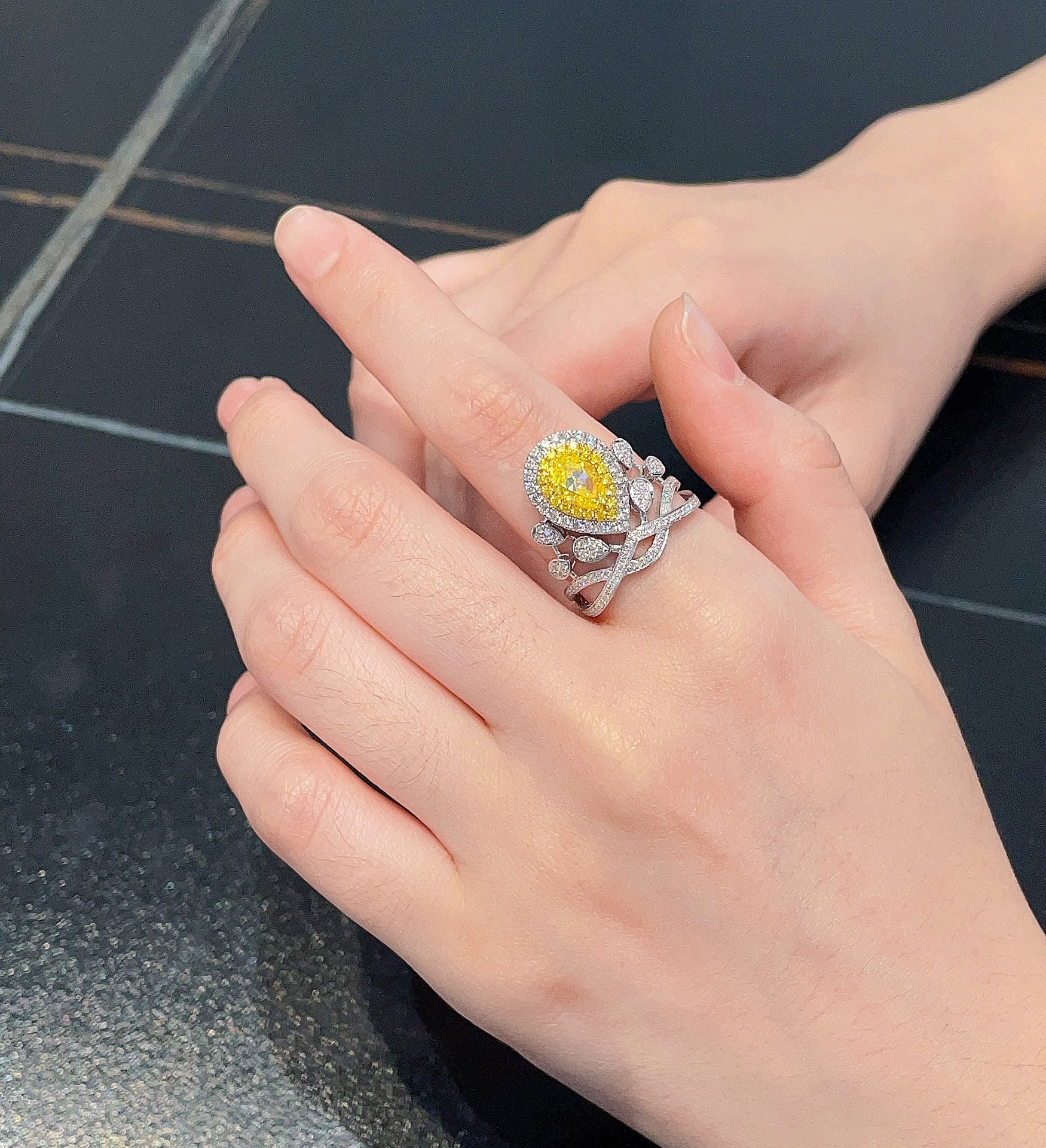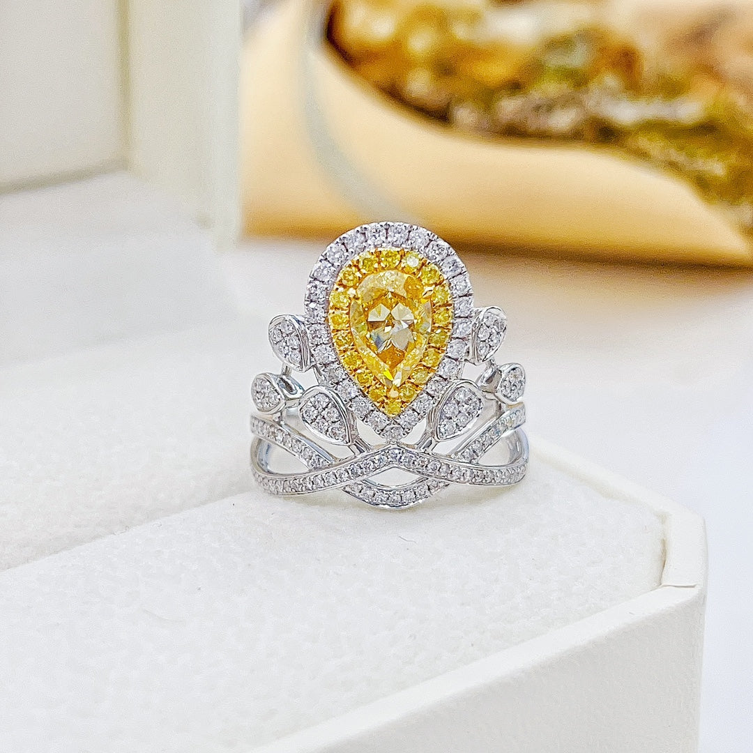 Indulge in the exquisite luxury of our 18K yellow gold diamond GIA teardrop tiara ring. This magnificent piece features a stunning main stone of 1.00ct, complemented by a 副石 of 0.64ct, all nestled in a graceful teardrop design reminiscent of a royal tiara. With a total weight of 5.66g and a resizable ring size of 14#, this ring promises a perfect fit for every royal finger. Accompanied by the prestigious GIA international certificate, this ring is a testament to its unparalleled quality and authenticity. Experience the allure of true elegance and make this exceptional jewelry the crowning glory of your collection. Don’t miss the opportunity to adorn yourself with this timeless treasure. Order now and embrace the royalty within!