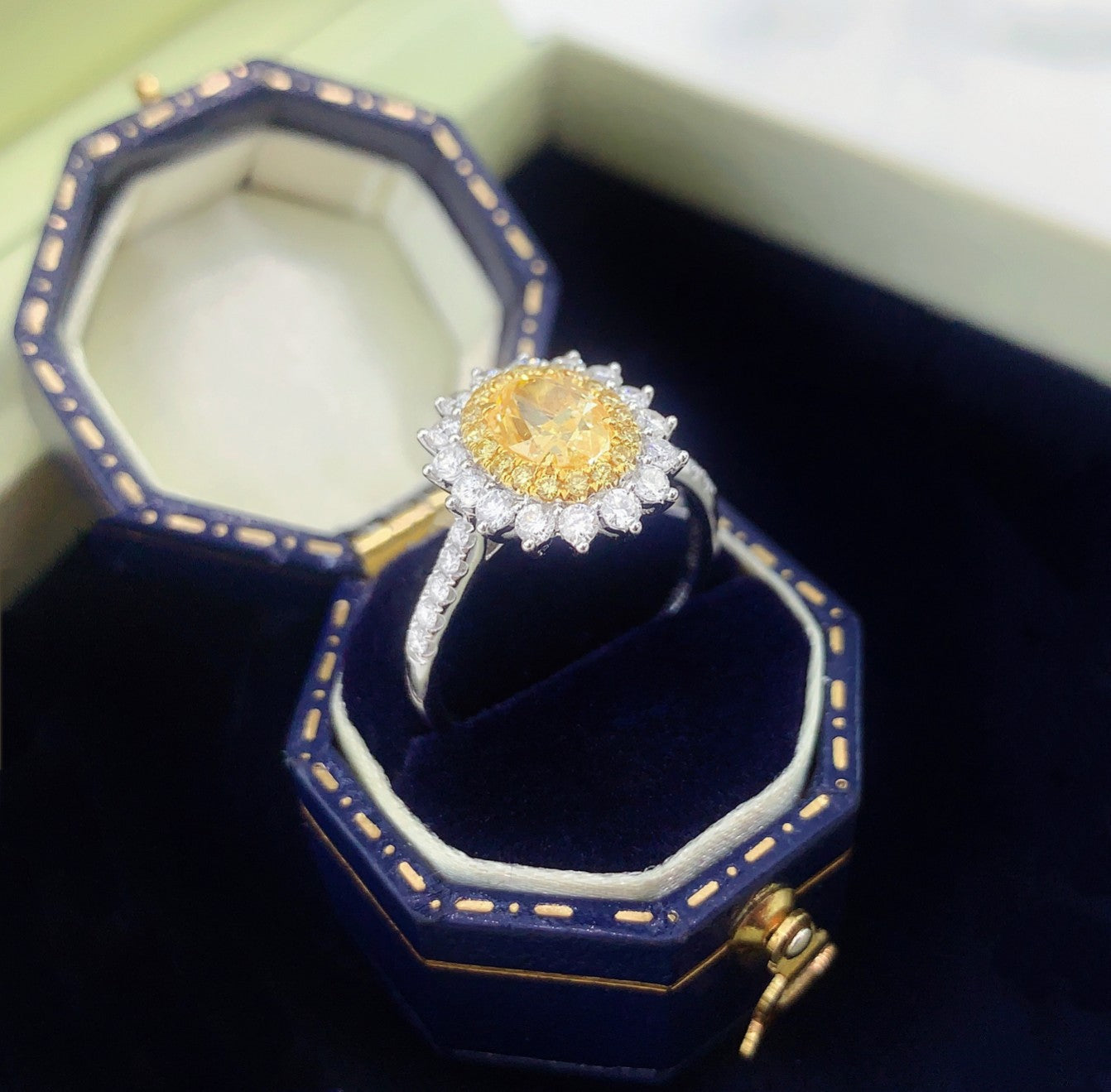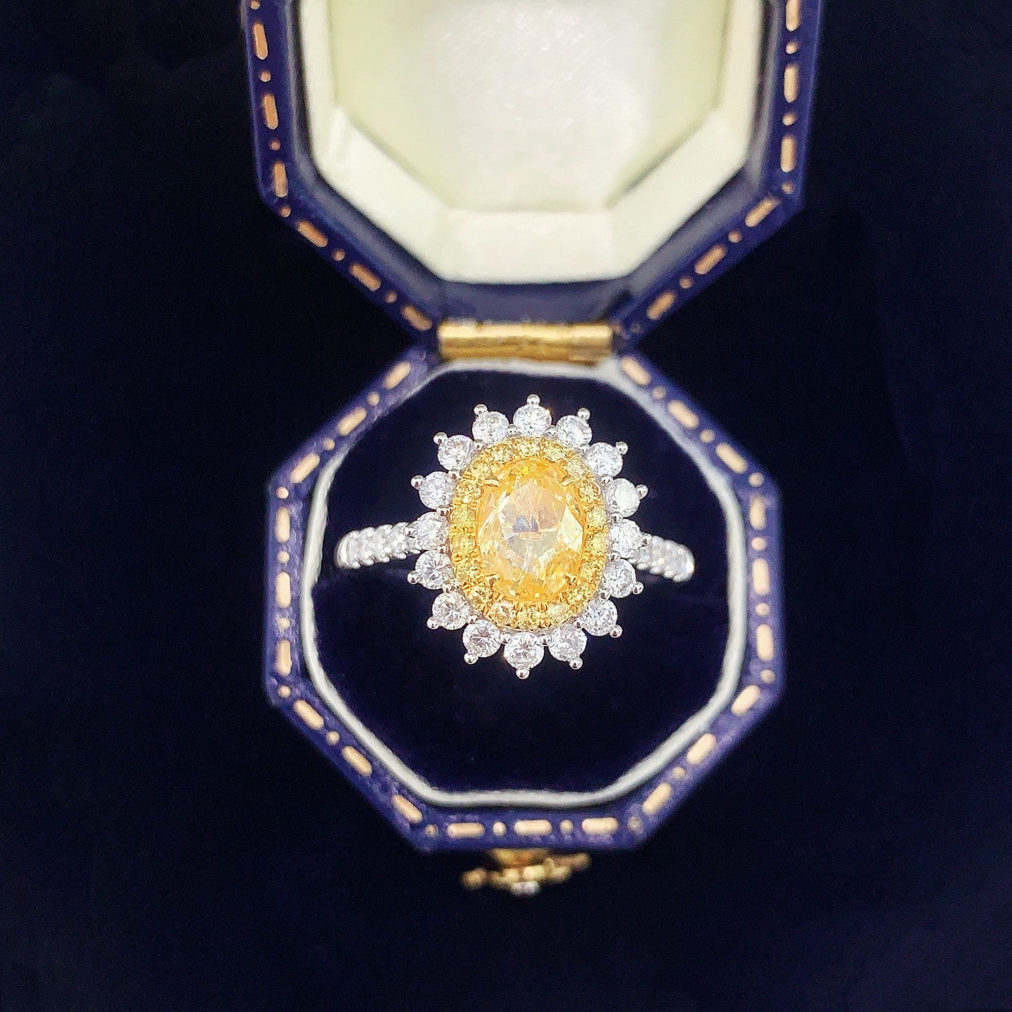 Discover the elegance of our 18K yellow gold diamond oval sunflower ring, a masterpiece of fine jewelry craftsmanship. This exquisite ring features a central diamond of 1.01 carats, complemented by accent diamonds totaling 0.638 carats, all set in a luxurious 18K yellow gold band. With a total weight of 3.5 grams, it’s designed for both comfort and style.