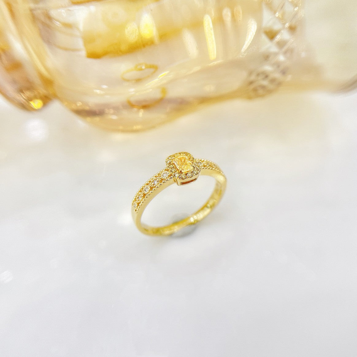 Indulge in the luxury of our exquisite 18K yellow gold diamond pillow shape lace edge ring. This stunning piece features a main stone of D0.18ct and accent stones totaling d0.08ct, all elegantly set in a design that exudes sophistication and class. With a total weight of 2.17g and a resizable ring size ranging from 10 to 18#, this ring promises both comfort and style. Crafted to perfection, it’s a jewelry piece that’s sure to elevate any ensemble and make a statement wherever you go. Experience the allure of high-end jewelry and make this exquisite ring a part of your collection. Don’t miss out on the opportunity to adorn yourself with this timeless beauty. Shop now and elevate your jewelry collection with this masterpiece.