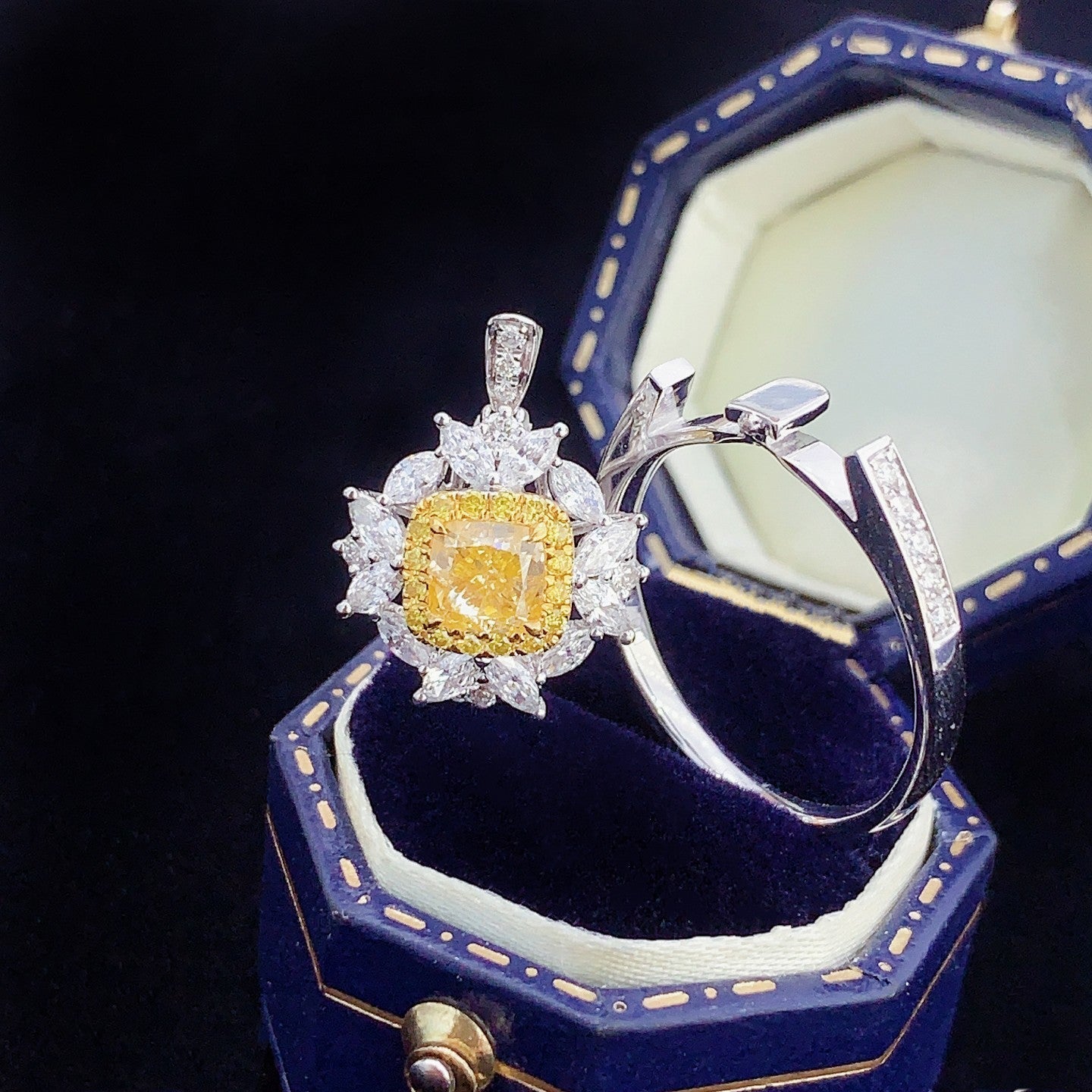 Introducing our exquisite 18K yellow gold diamond pillow shape two-way wear jewelry, a masterpiece crafted for those who appreciate the finer details in life. The centerpiece boasts a dazzling D0.76ct diamond, complemented perfectly by surrounding diamonds totaling d0.73ct, creating a breathtaking display of brilliance. With a total weight of 4.49g and a size 13# (adjustable), this piece is designed for both comfort and elegance.