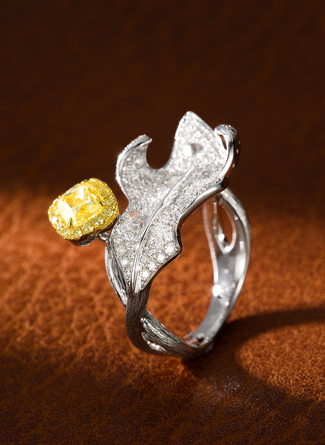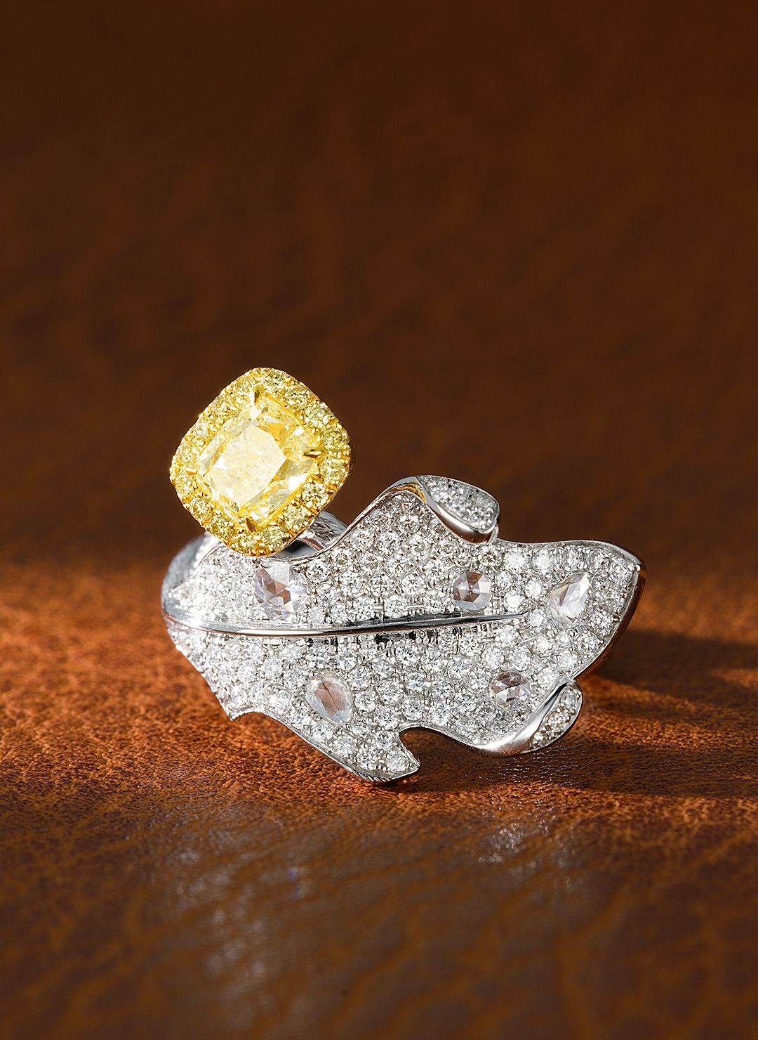 Discover the elegance of our exquisite 18K yellow gold diamond pillow-shaped leaf ring, a true masterpiece of jewelry craftsmanship. This stunning ring features a prominent main stone of 1.01 carats, complemented by a 副石 of 0.89 carats, creating a harmonious blend of brilliance and sophistication. With a total weight of 8.0 grams and a resizable ring size of 13.16#, it promises both comfort and a personalized fit.