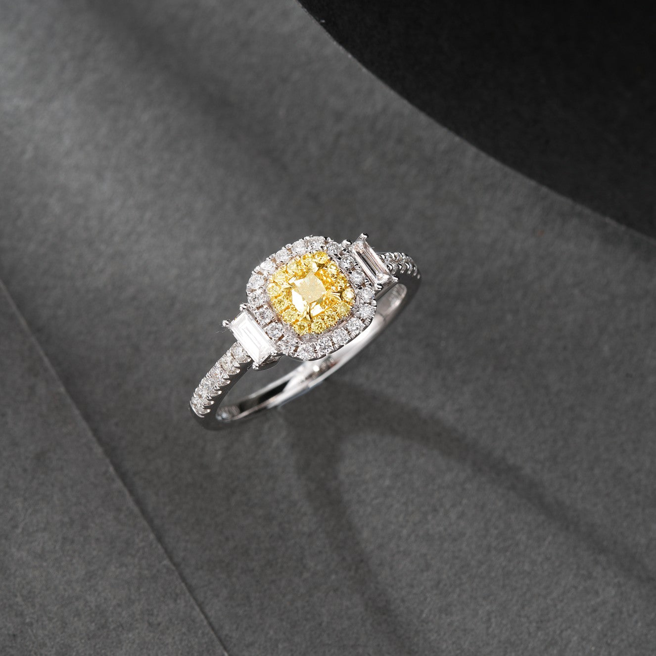 Discover the elegance of our 18K yellow gold diamond pillow-shaped ring, featuring a stunning main stone of D0.30ct complemented by side stones totaling d0.503ct. This exquisite piece, with a total weight of 3.4g, is designed to captivate with its unique pillow-shaped design and sparkling diamonds. The ring size is 13.16# and can be resized to fit perfectly. Crafted to perfection, this jewelry item is a symbol of luxury and sophistication, making it an ideal choice for those seeking a timeless and elegant addition to their collection. Embrace the beauty of this premium jewelry and elevate your style today. Shop now and indulge in the luxury you deserve!