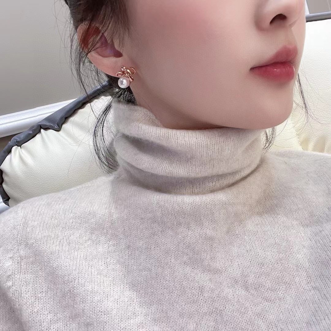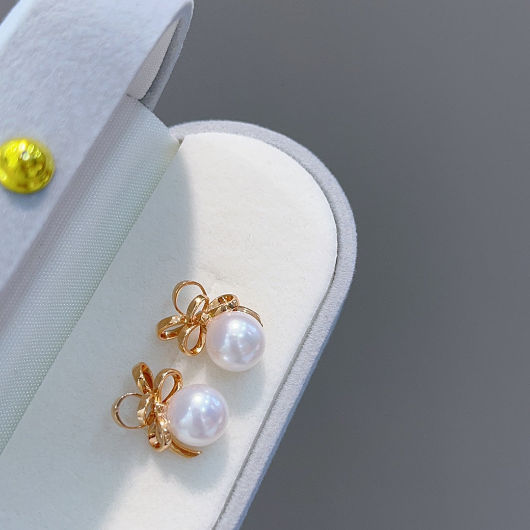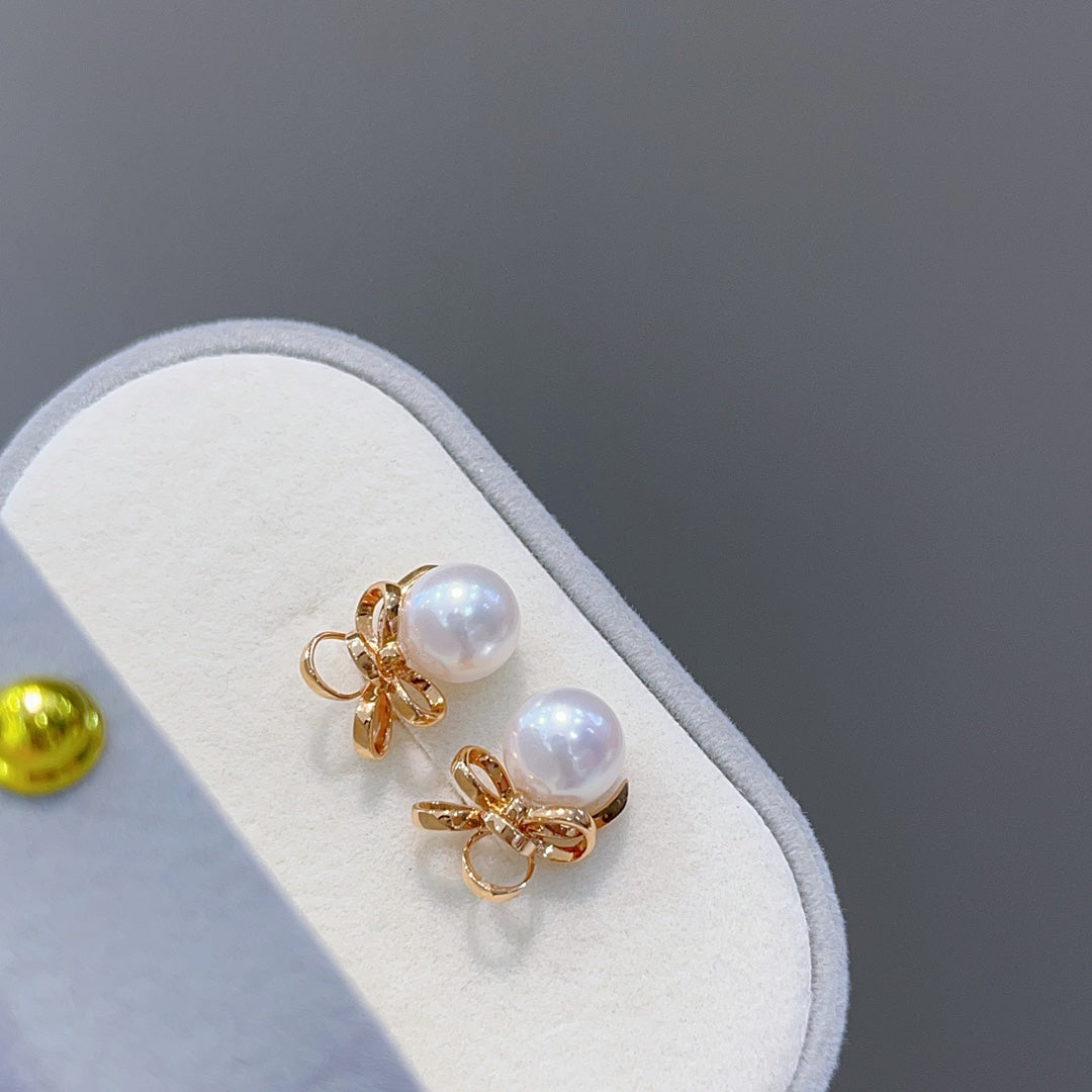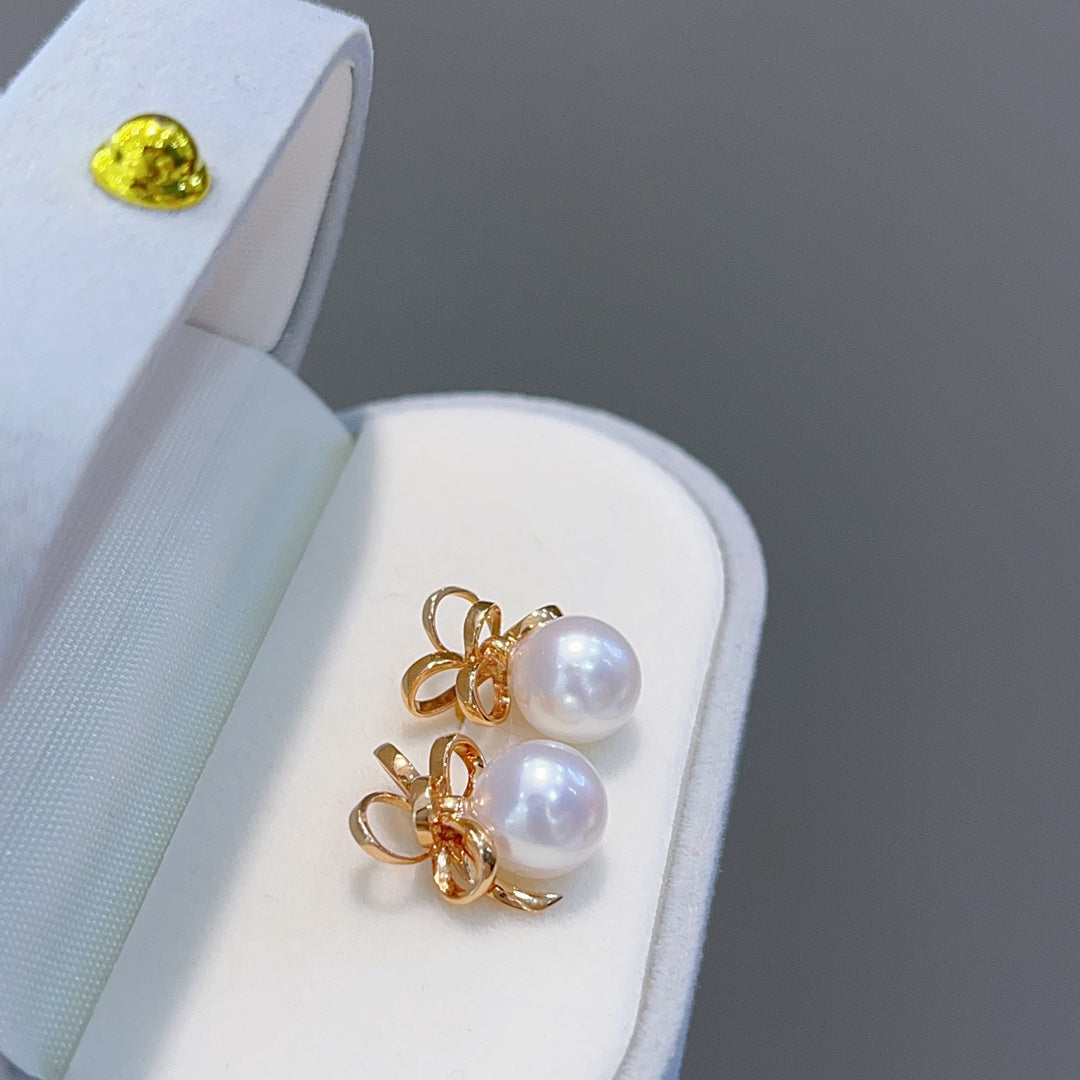 Indulge in the timeless elegance of these 8-8.5mm Japanese Akoya pearls, meticulously crafted to perfection. Each pearl boasts a flawless, nearly blemish-free surface with a brilliant luster that captures the light from every angle. Set in luxurious 18K rose gold, these earrings feature a delicate silk ribbon bow design that adds a touch of whimsy and sophistication to your look.