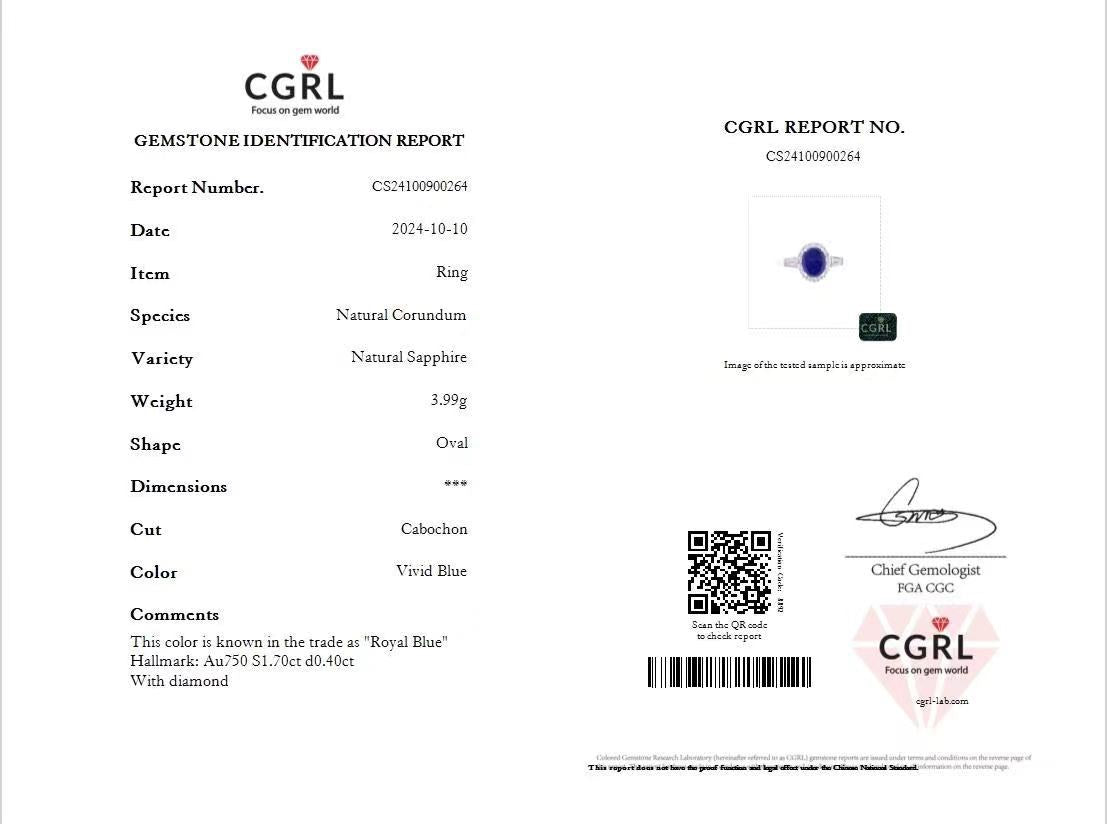 Embrace timeless elegance with this exquisite 18k gold ring, featuring a stunning royal blue sapphire that complements any hand. Crafted to perfection, this jewelry piece boasts a 1.70-carat sapphire, accentuated by 0.40 carats of sparkling diamonds, all set in 3.65 carats of luxurious gold. Its versatile design makes it perfect for daily wear, adding a touch of sophistication to any outfit. Indulge in the luxury of this meticulously crafted ring, a true testament to classic beauty and exceptional craftsmanship. Don’t miss the opportunity to elevate your style with this must-have jewelry piece that exudes grace and charm. Act now to make this stunning ring a part of your collection.
