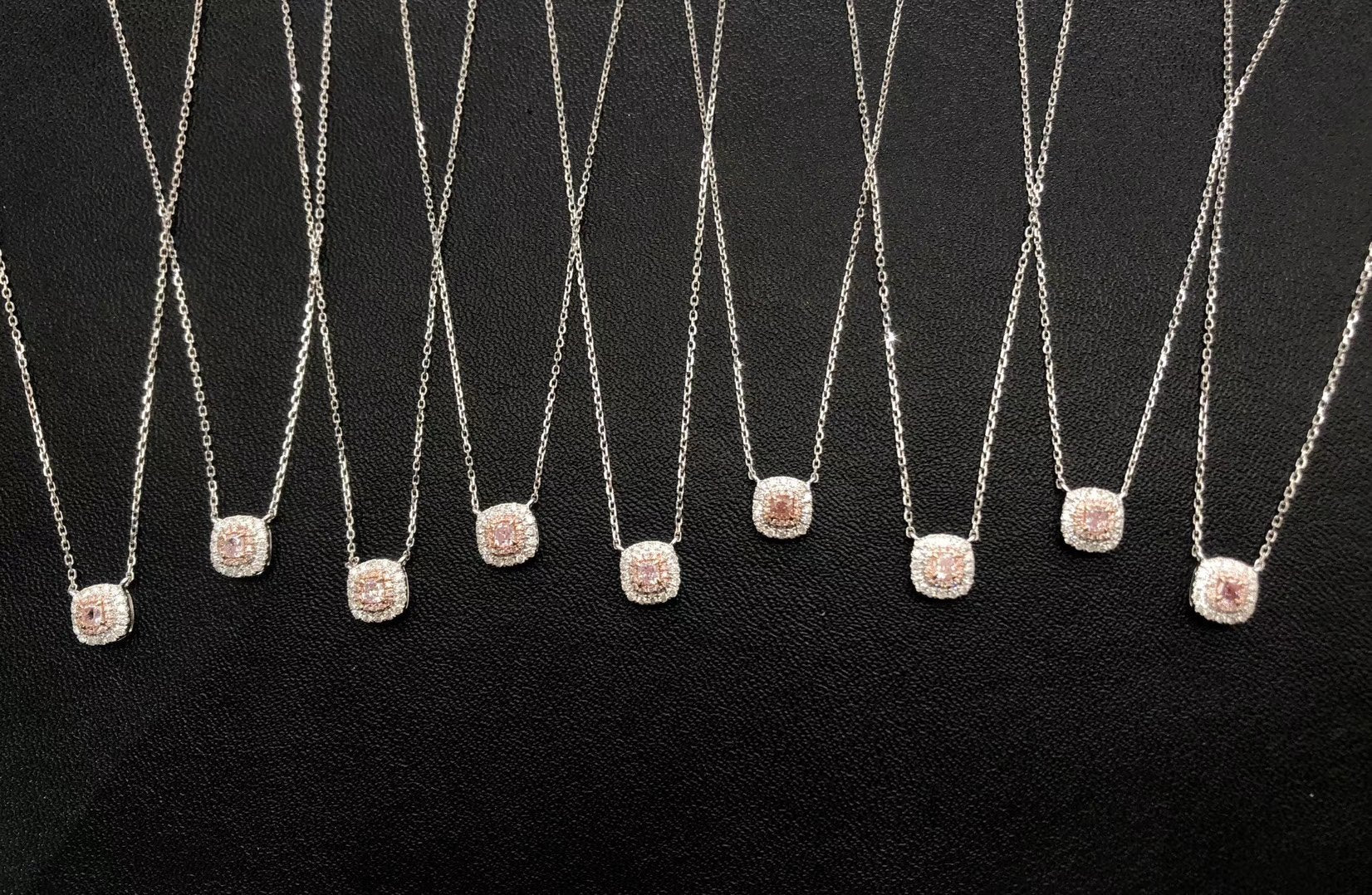 Discover the elegance embodied in our Cushion-Cut Pink Diamond Pendant, a true masterpiece in the realm of jewelry. Crafted with precision, the main stone weighs 0.085ct, complemented by auxiliary stones totaling 0.103ct, all nestled in a design that weighs 1.900g. This pendant is not just an accessory; it’s a statement, a symbol of refined taste and timeless beauty.