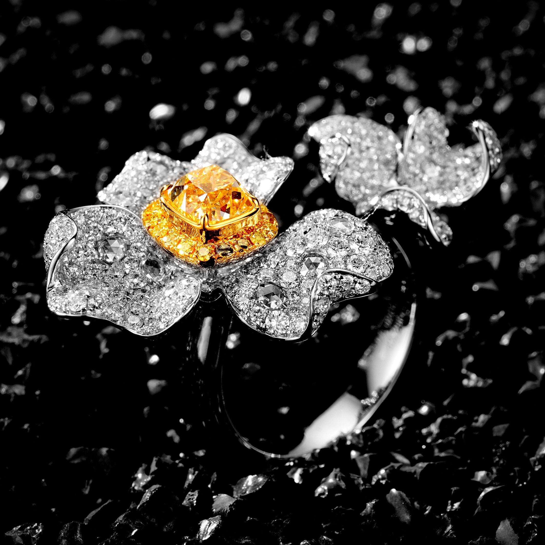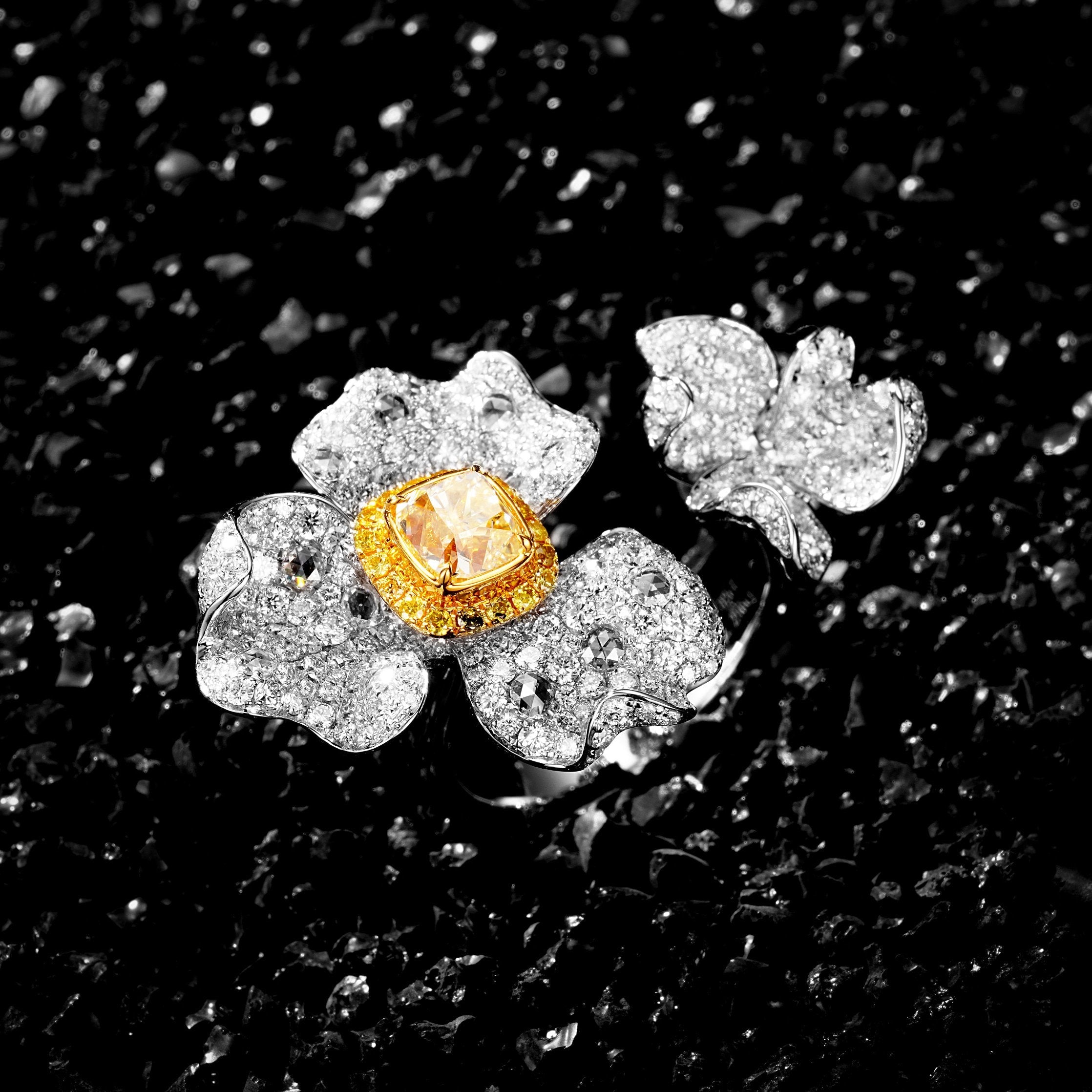 Indulge in the奢华光芒 of our exquisite Diamond Open Flower Ring, a true masterpiece of jewelry craftsmanship. The centerpiece boasts a breathtaking D1.020ct diamond, complemented by an array of smaller diamonds totaling d2.296ct, creating a mesmerizing sparkle that captures attention from every angle. Crafted with precision, this ring weighs 8.600g and is sized at 14#, making it a perfect fit for those seeking a statement piece that exudes elegance and sophistication. Elevate your jewelry collection with this stunning ring that embodies timeless beauty and unparalleled luxury. Experience the allure of premium jewelry and make this exquisite piece a symbol of your unique style and refined taste. Shop now and embrace the enchantment of this dazzling Diamond Open Flower Ring.