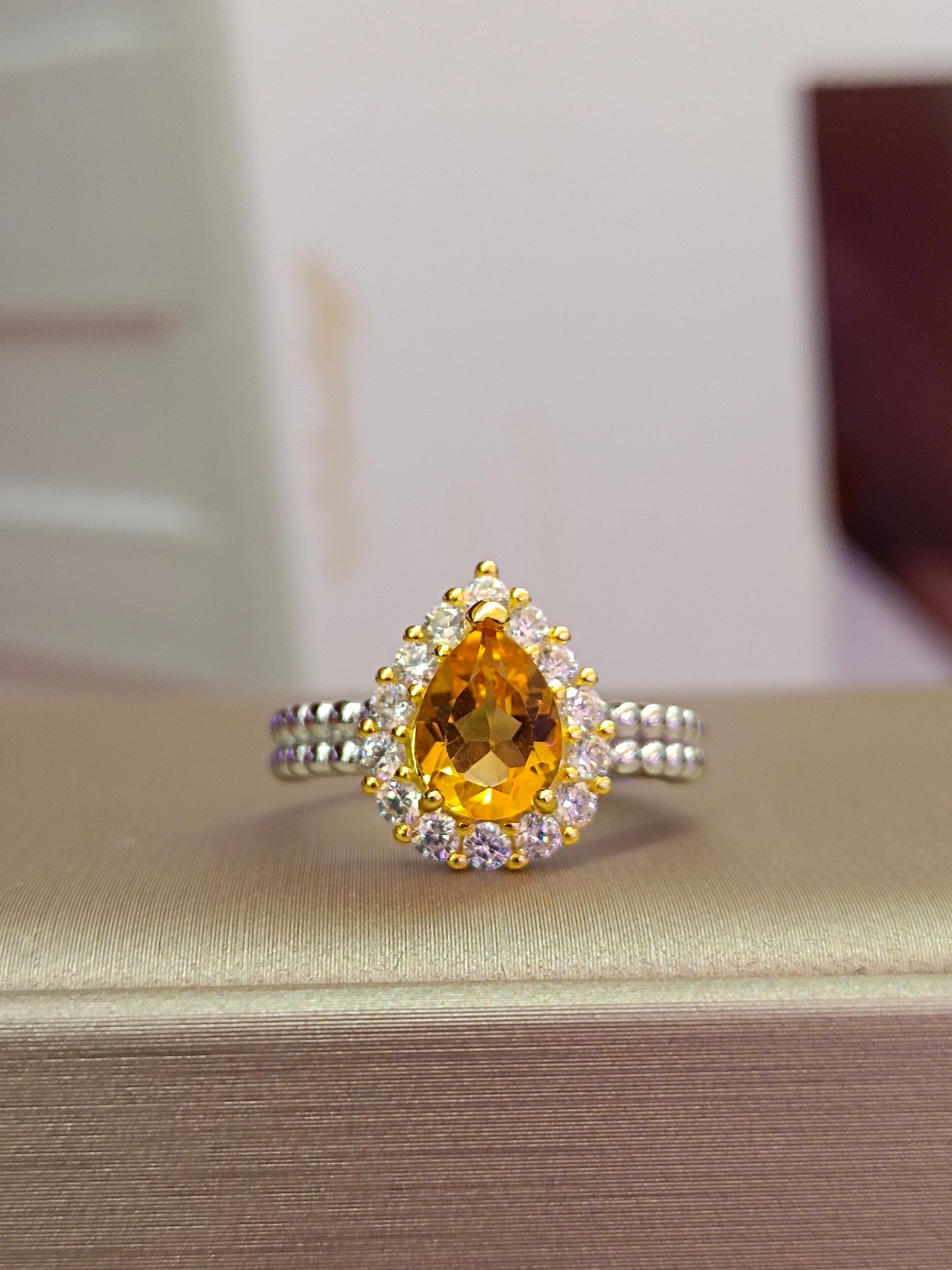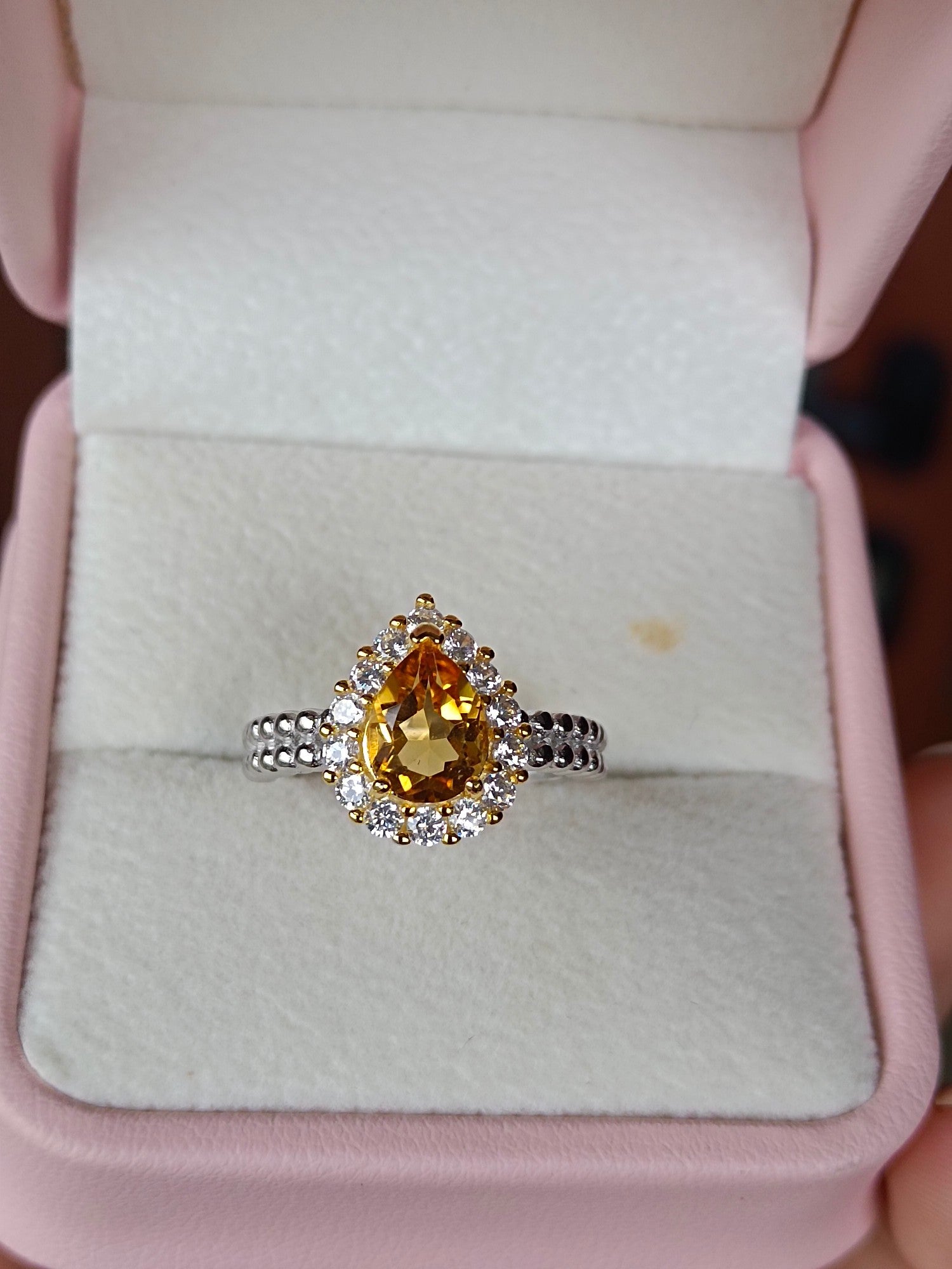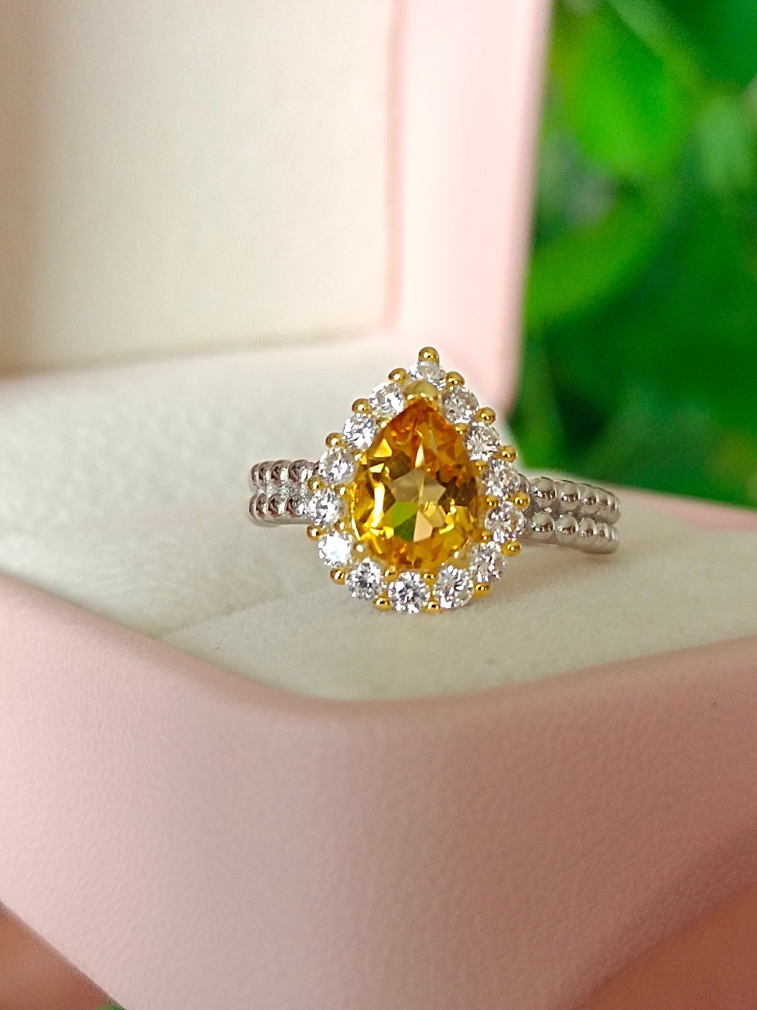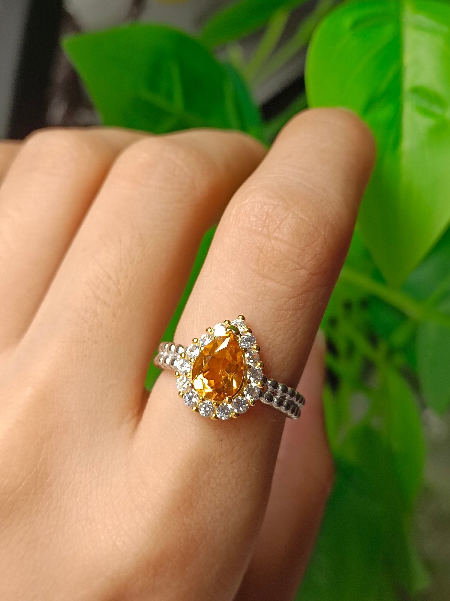 Experience the allure of our exquisite Natural Yellow Citrine Teardrop Ring, crafted with a flawless crystal and a rich, captivating hue that exudes an advanced sense of elegance. This high-saturation golden-toned ring stands out with its imposing yet refined charm, rivaling any other gemstone in terms of impact. The teardrop-shaped citrine, measuring 6*8mm, is a statement piece that demands attention. Indulge in the luxury of this jewelry masterpiece that effortlessly complements any ensemble, adding a touch of sophistication to your look. Don’t miss the opportunity to elevate your style with this breathtaking ring – add it to your collection today and let its brilliance shine!