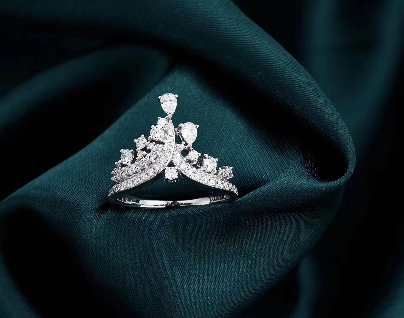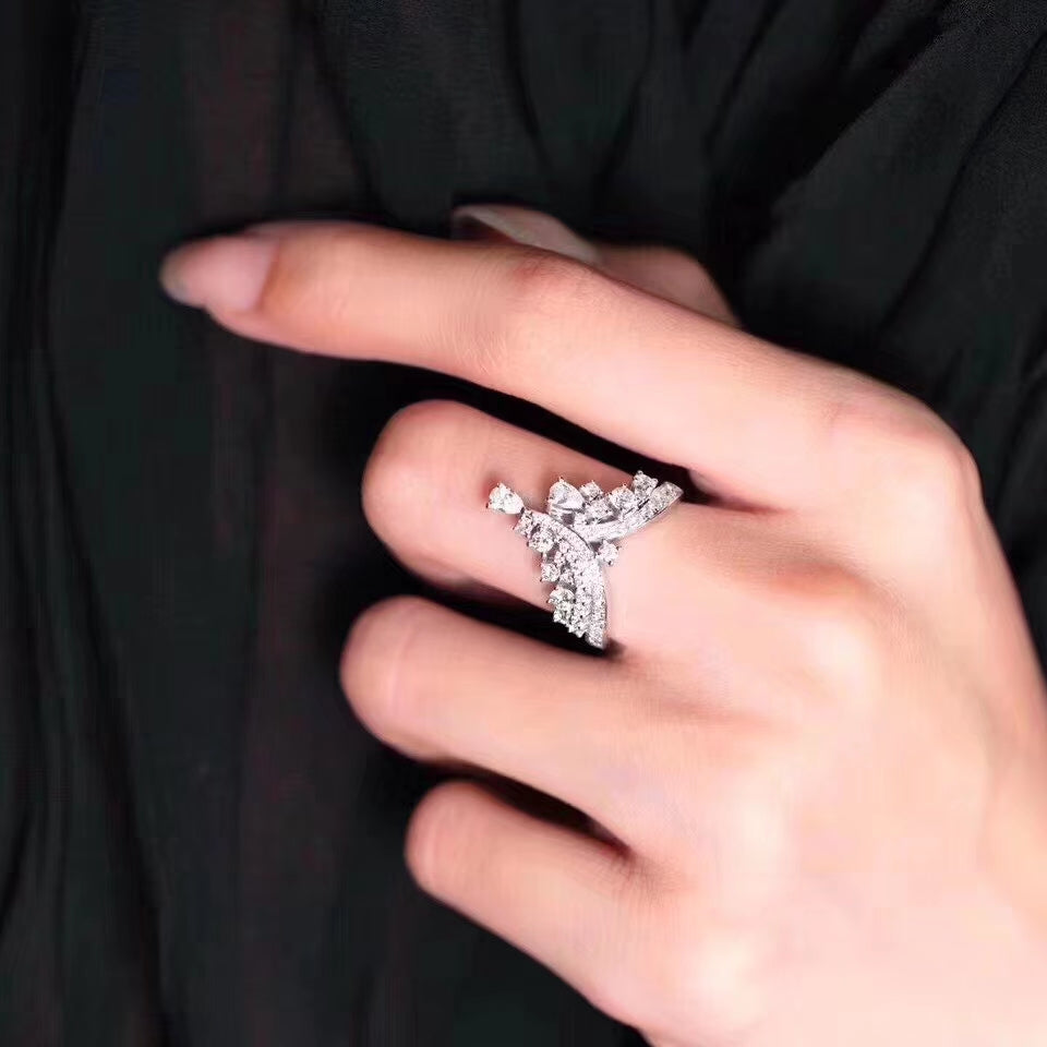 Experience the elegance of our exquisite Water Drop Crown Ring, a true masterpiece in our Premium Jewelry Collection. Crafted with precision, this ring features a central diamond weighing 0.150ct, complemented by accent diamonds totaling 0.582ct, all set in a design that captures the essence of sophistication. With a total weight of 3.010g, this ring is not only a symbol of luxury but also a comfortable fit for any finger size, thanks to its comprehensive range of available sizes. Elevate your style quotient and make a statement with this stunning piece of jewelry that exudes timeless beauty and grace. Embrace the allure of this Water Drop Crown Ring – a jewelry investment that promises to be cherished for generations. Shop now and adorn yourself with the radiance of premium jewelry.