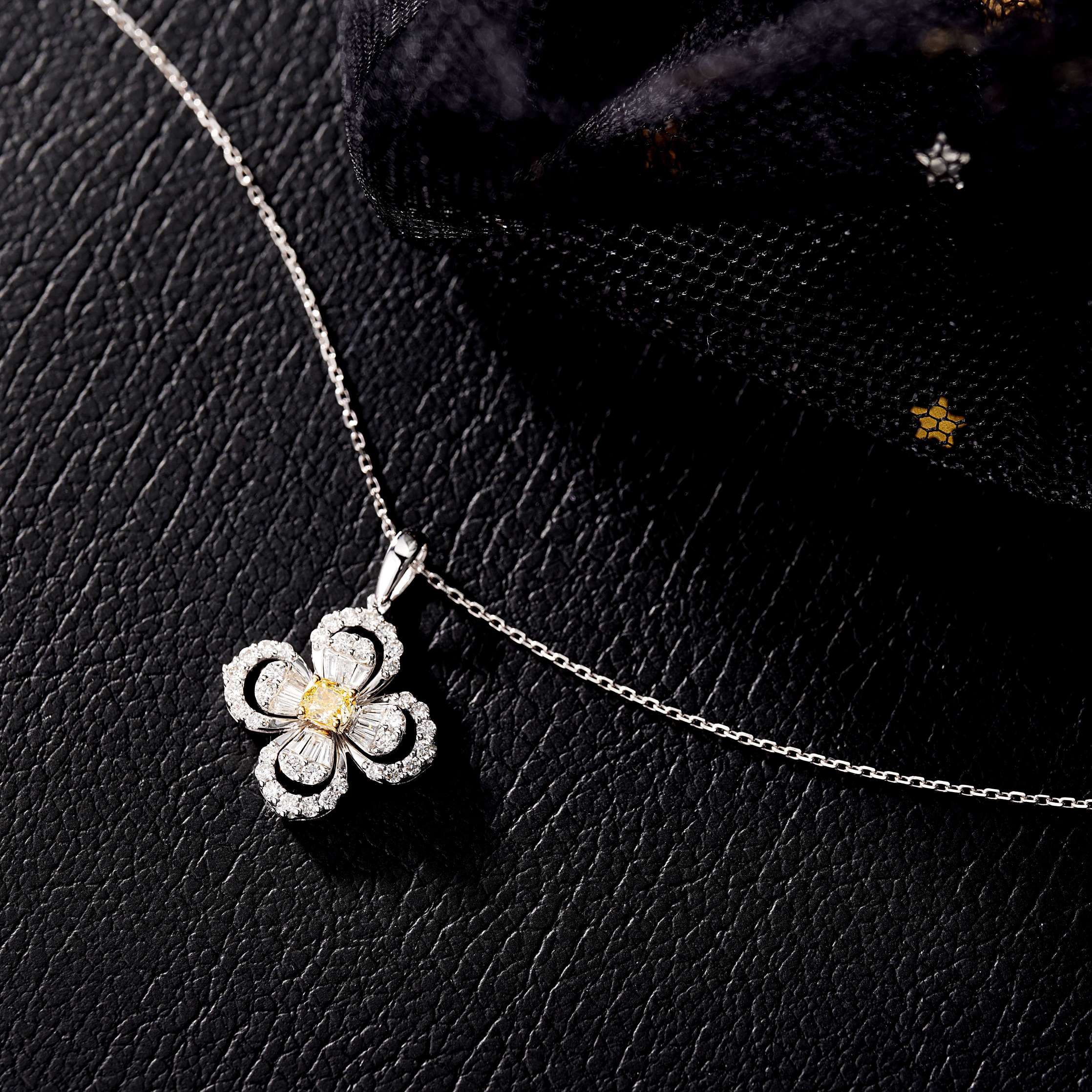 Indulge in the exquisite elegance of our Diamond-Accented Waterdrop Four-Leaf Pendant, a masterpiece of jewelry craftsmanship. This pendant features a central stone weighing 0.230ct, complemented by accent stones totaling 0.460ct, all nestled in a design that radiates timeless beauty. With a total weight of 3.32g, this pendant is a perfect blend of sophistication and grace. Embrace the luxury it offers and make it a cherished part of your jewelry collection. Experience the allure of this exquisite piece and elevate your style quotient. Shop now and adorn yourself with this magnificent jewelry treasure.