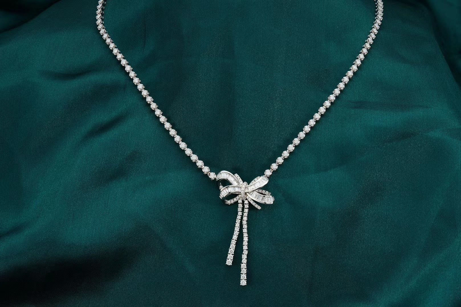Indulge in the luxury of owning this remarkable piece that combines timeless beauty with exceptional craftsmanship. Its unique design and impeccable quality make it a standout choice for those seeking to elevate their jewelry collection. Embrace the allure of this Diamond Bowknot Pendant Necklace – a symbol of refined taste and an investment in enduring elegance. Shop now to adorn yourself with this exquisite jewelry treasure that promises to be the highlight of your every ensemble.