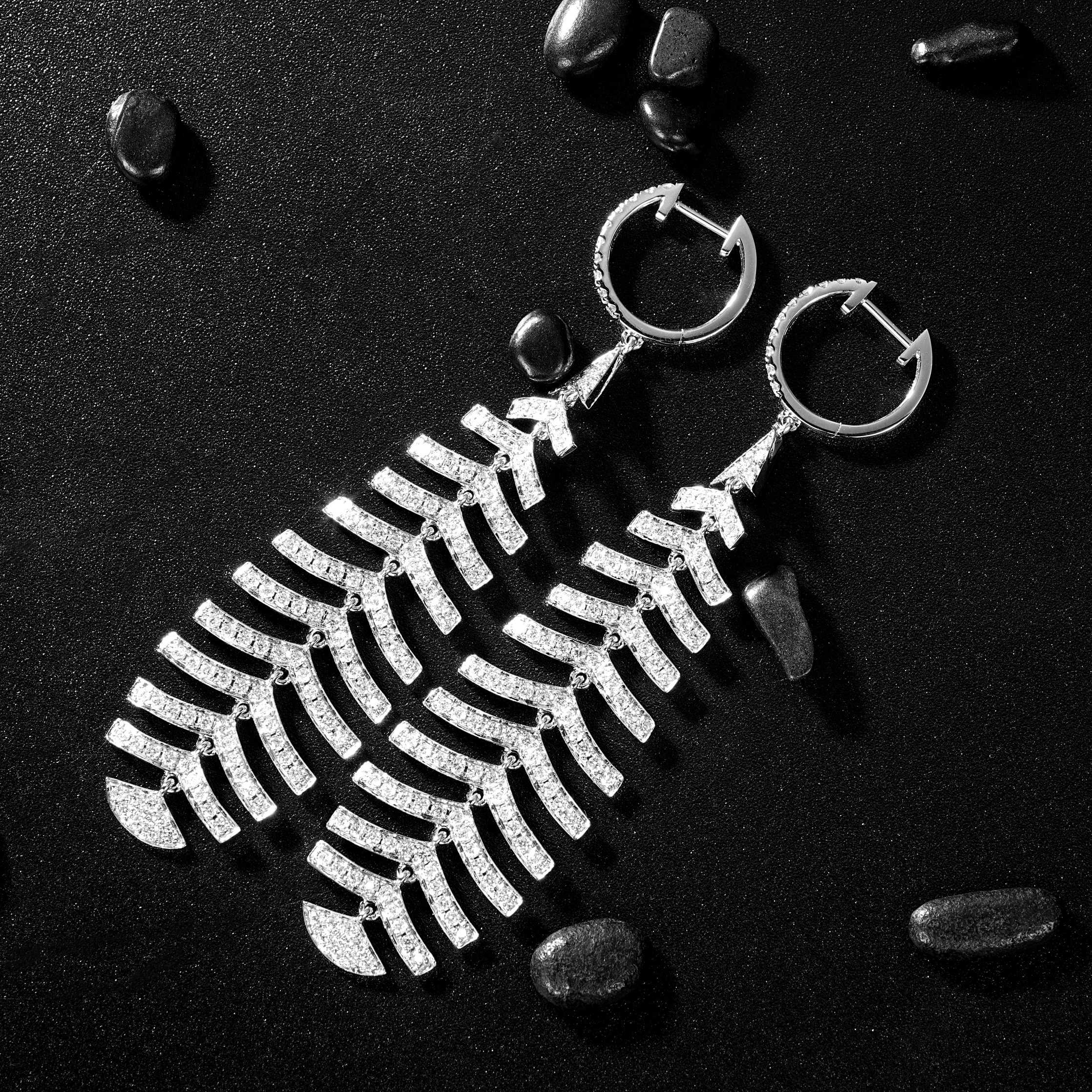 Introducing our exquisite Diamond Feather Earrings, a stunning jewelry piece that adds a touch of elegance and glamour to any ensemble. Crafted with precision, the earrings feature a dazzling main stone weighing 1.796 carats, with a total weight of 8.200 grams. The exquisite design measures approximately 6.5cm in length, making it a perfect statement accessory for any occasion. Embrace the luxury and sophistication of these feather earrings, a true masterpiece in jewelry craftsmanship. Elevate your jewelry collection with this unique and captivating piece that is sure to turn heads wherever you go. Don’t miss the opportunity to own this remarkable jewelry treasure. Shop now and experience the allure of exquisite diamond feather earrings.