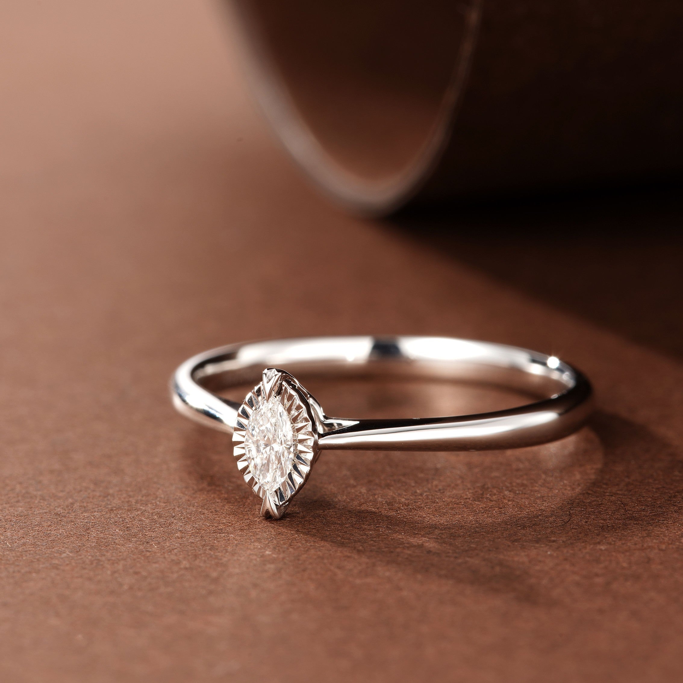 Elevate your style with this exquisite Diamond Marquise Shaped Ring adorned with milgrain detailing. Crafted to perfection, this ring features a captivating marquise-cut stone, with the main diamond weighing 0.097 carats, nestled in a design that exudes timeless elegance. The total weight of the ring is 1.740 grams, offering a comfortable fit without compromising on luxury.