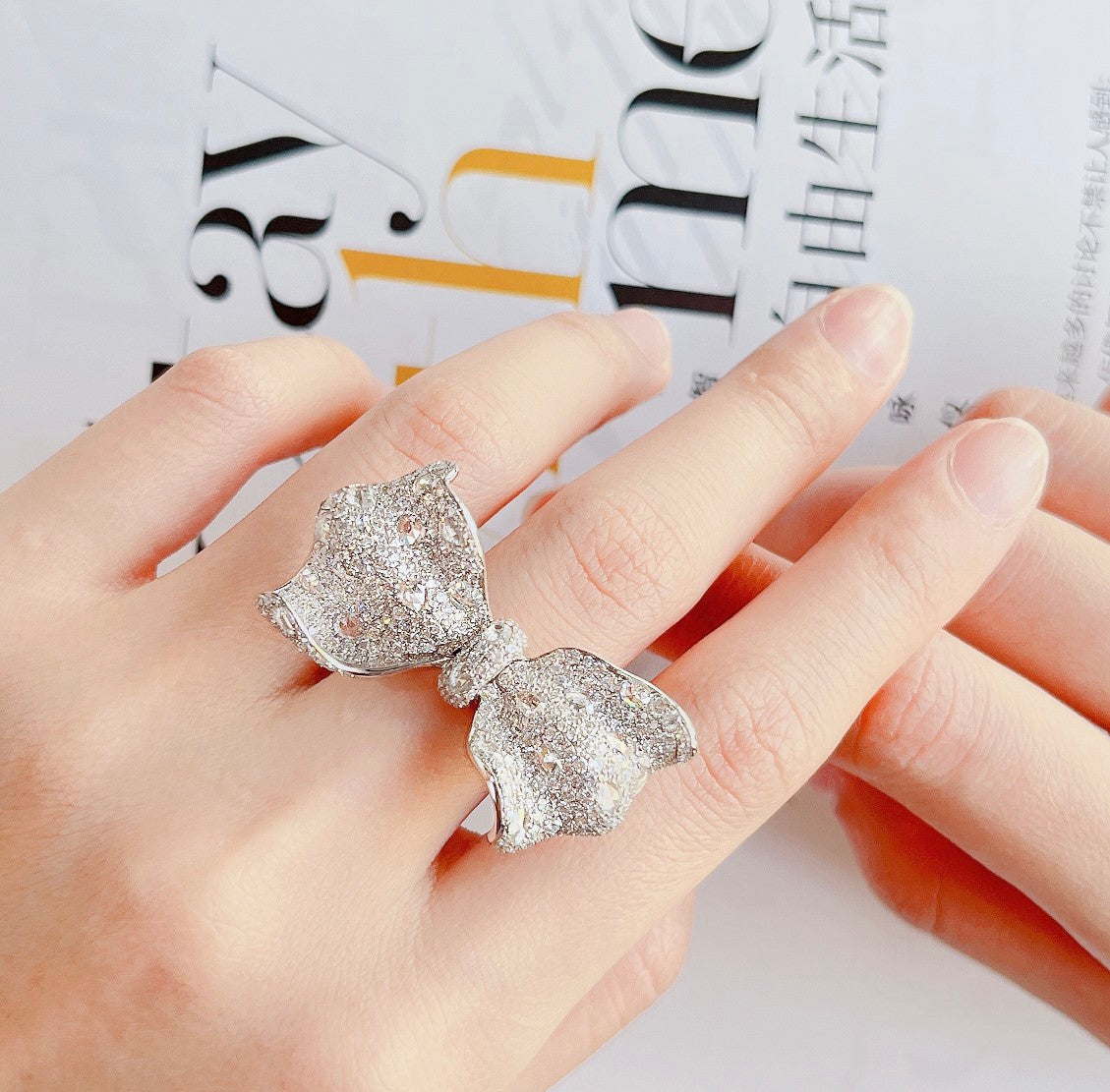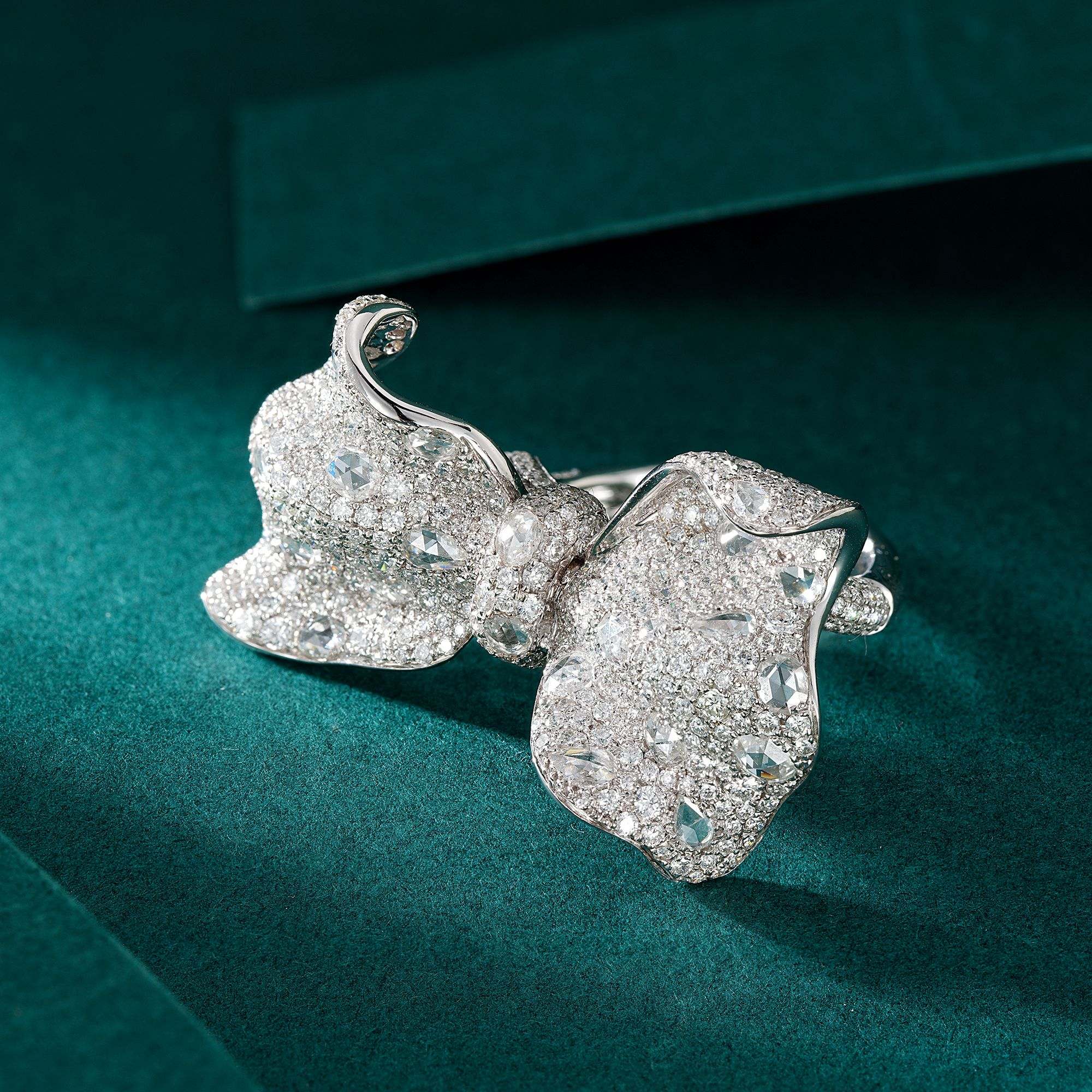 Elevate your jewelry collection with this timeless piece that effortlessly combines classic and modern aesthetics. Whether it’s a special occasion or a simple desire to treat yourself, this Diamond Rose Bowknot Ring is a statement of refined taste and elegance. Don’t miss the opportunity to make this exquisite jewelry the centerpiece of your collection. Explore our luxury jewelry offerings and experience the allure of exceptional craftsmanship and design. Shop now and embrace the beauty of this stunning ring.
