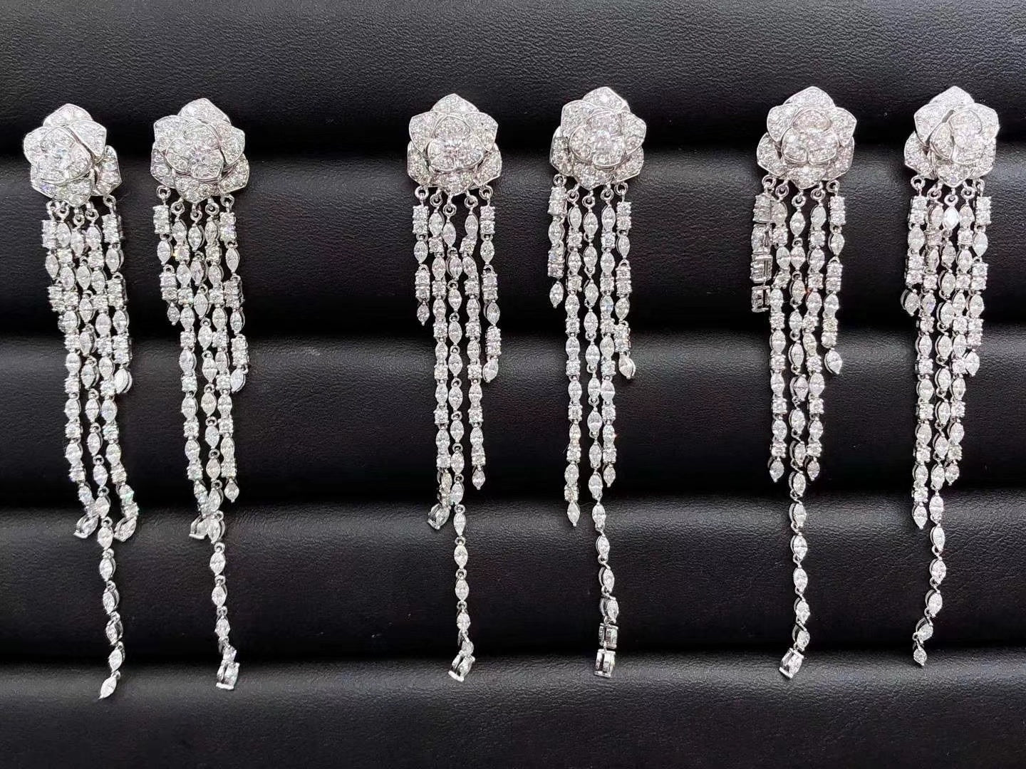 Discover the exquisite Diamond Rose Earrings, a stunning jewelry masterpiece crafted with precision and finesse. The centerpiece boasts a dazzling 2.576ct diamond, complemented by an array of smaller diamonds totaling 1.318ct, all elegantly set in a design that weighs 12.91g. These earrings are a symbol of luxury and sophistication, perfect for adding a touch of glamour to any occasion. Elevate your jewelry collection with this rare find, offered at an irresistible wholesale price directly from our exclusive inventory. Embrace the elegance and make these rose earrings a cherished part of your attire. Act now to adorn yourself with this timeless piece of jewelry.