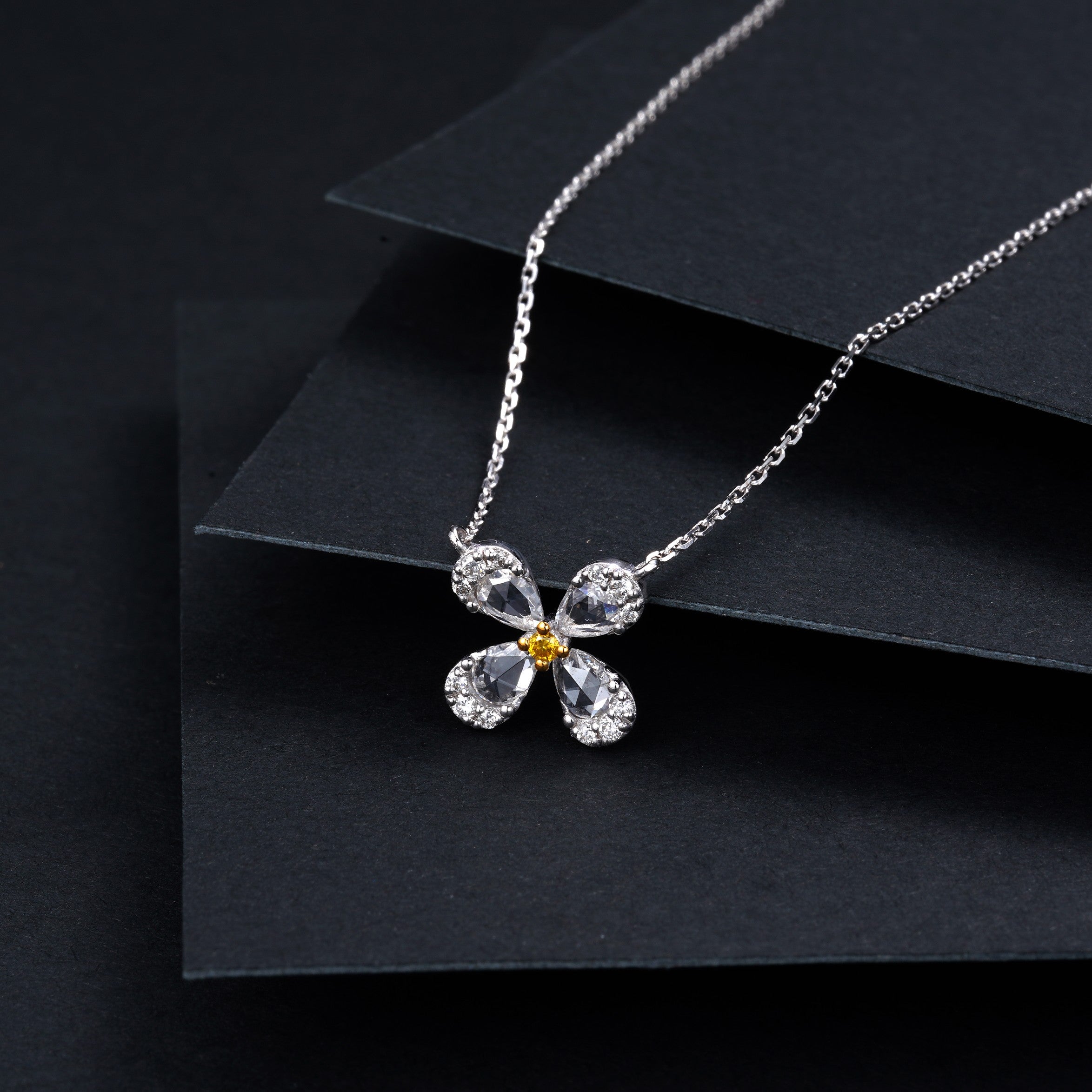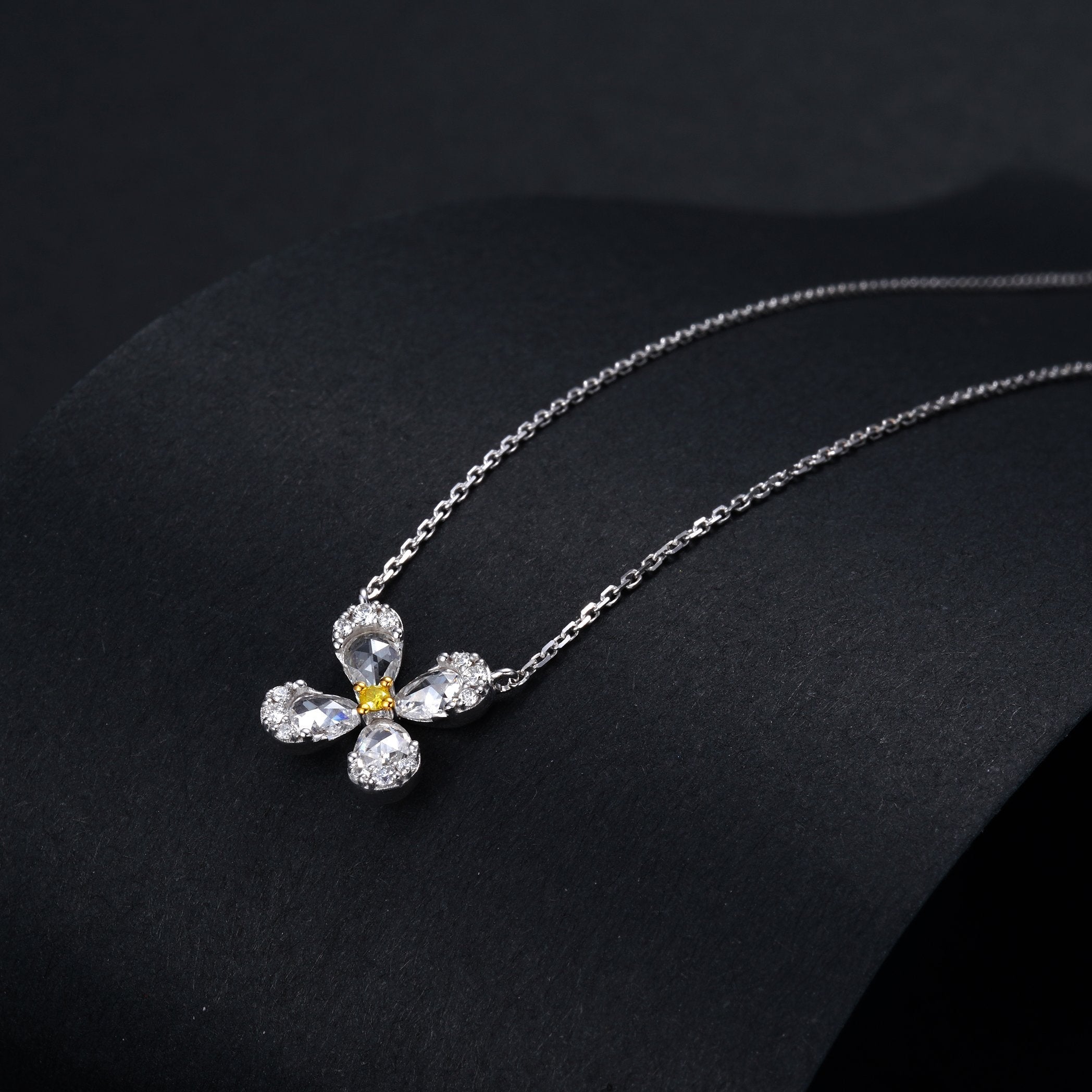 Indulge in the elegance of our Diamond Rose Pendant with Four Flowers, a masterpiece of luxury jewelry. Crafted with precision, the pendant features a central diamond weighing 0.374 carats, complemented by auxiliary diamonds totaling 0.097 carats. The total weight of this exquisite piece is 2.220 grams, making it a perfect accessory for any occasion. Elevate your jewelry collection with this stunning pendant that combines timeless beauty with exceptional craftsmanship. Explore our collection now and experience the allure of high-end jewelry that speaks to your unique sense of style. Shop today and adorn yourself with the radiance of this exquisite diamond pendant.